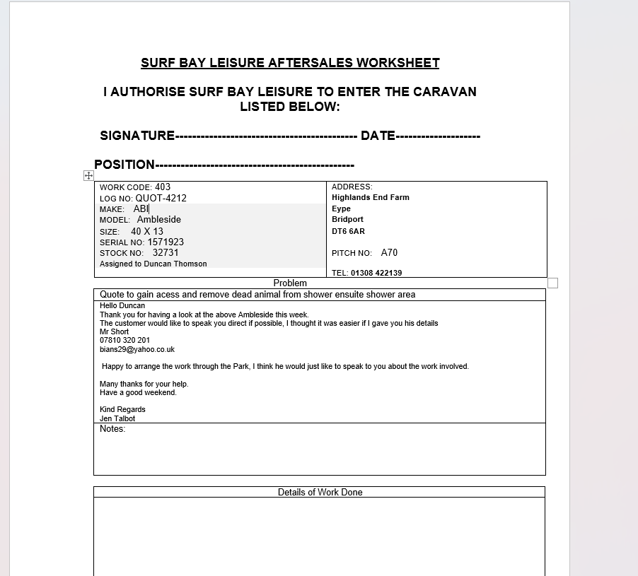 Happy to arrange the work through the Park, I think he would just like to speak to you about the work involved.