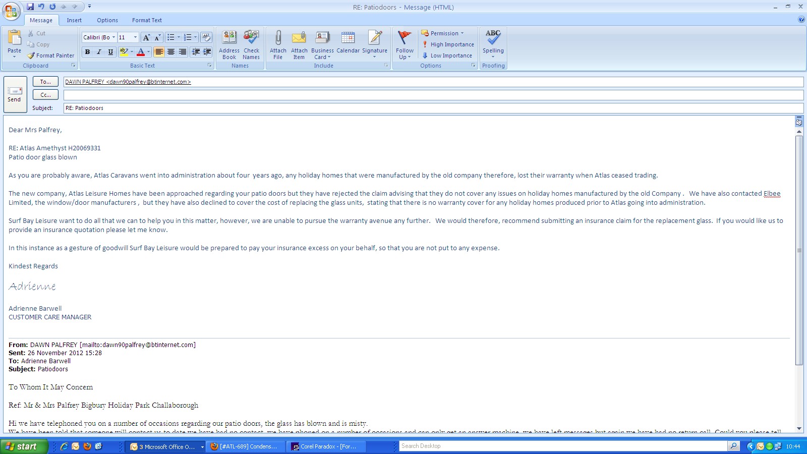 Condensation between panes on lh patio door