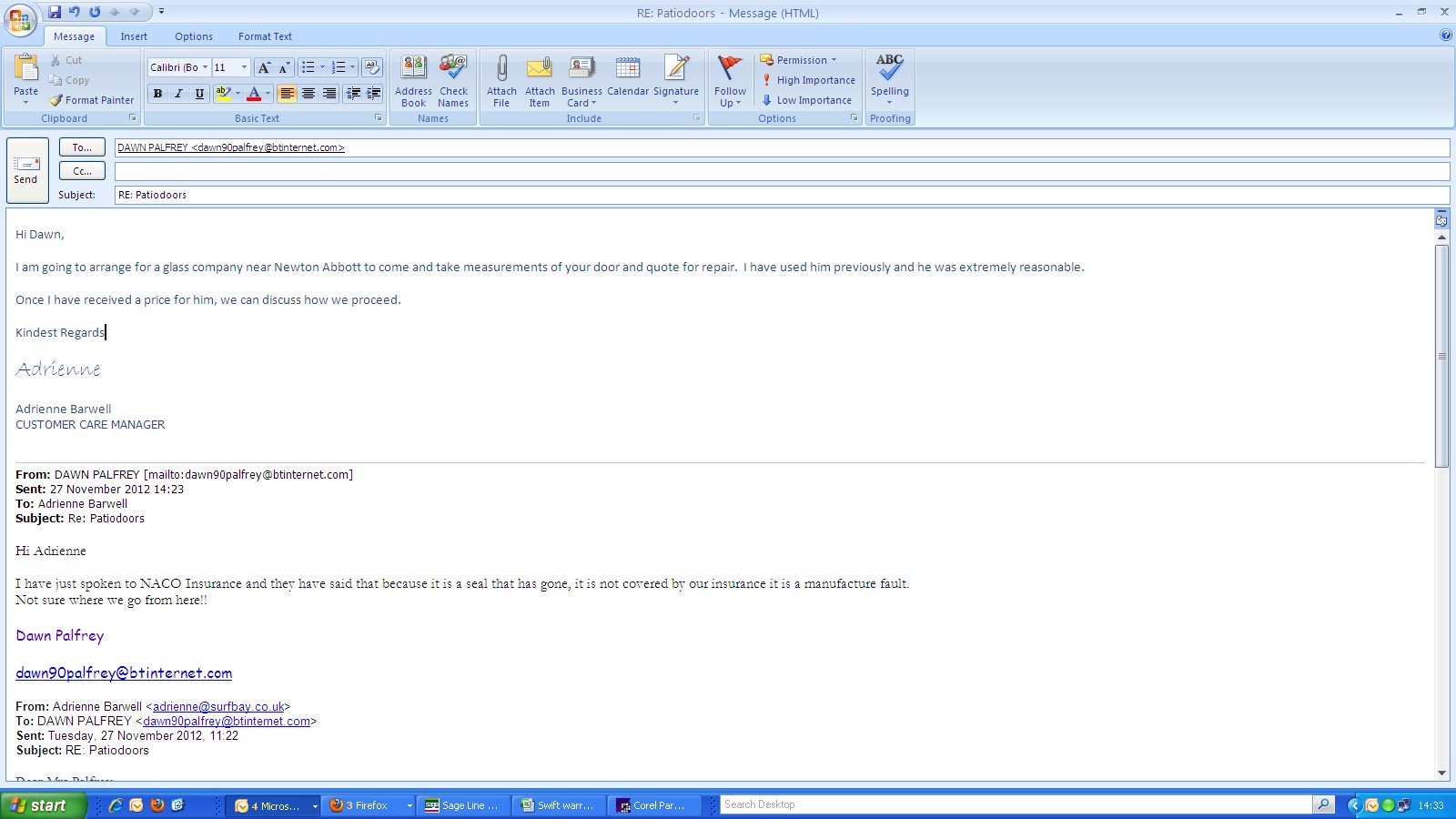mr and mrs Palfrey 01548 810771 extension 145