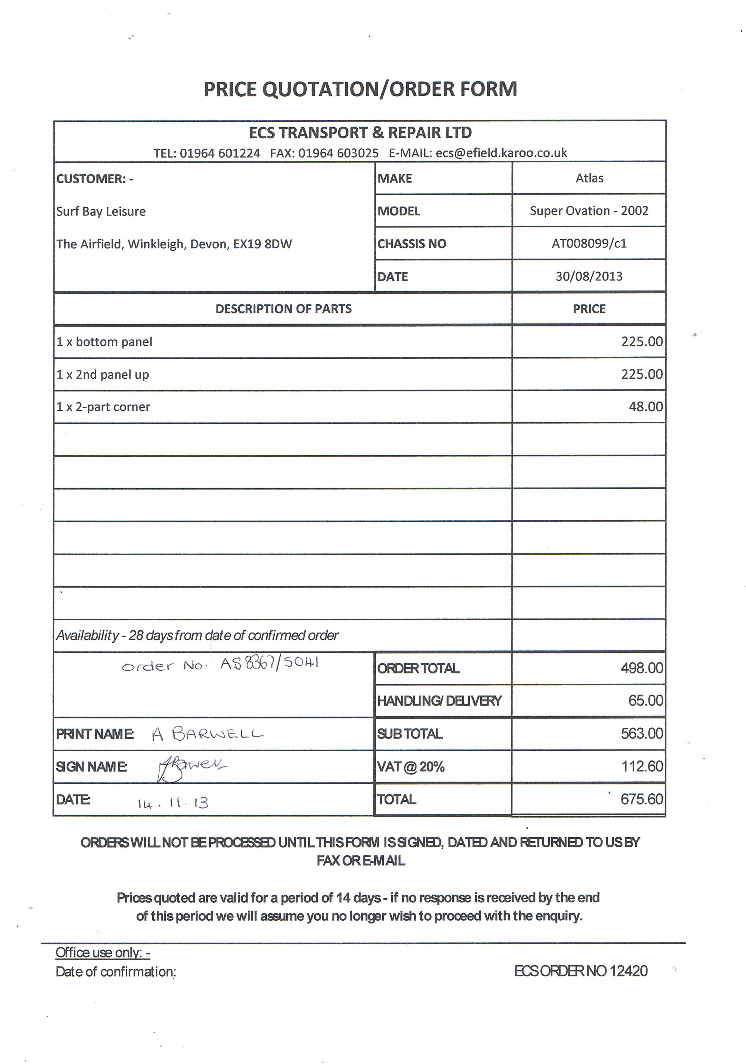 Adrienne Barwell (Inactive) added a comment - I have informed Mr Griffith that the panels are in stock and will call him on Friday to arrange a visit