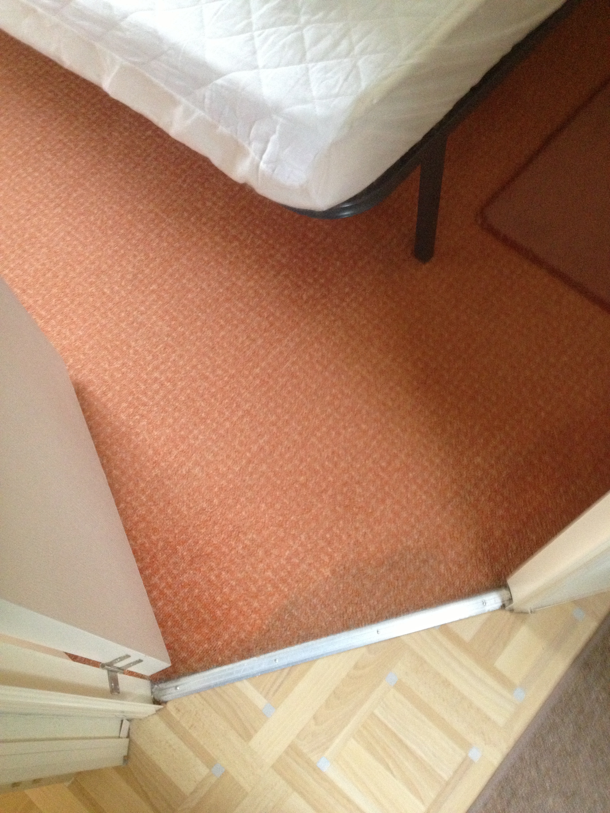 A hose has burst on the shower causing damage to the carpet wall boards and units