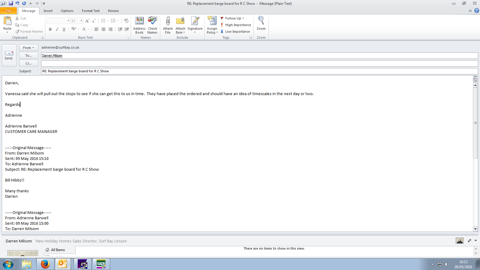 Adrienne Barwell (Inactive) added a comment - Steve advised that he has replaced the barge board