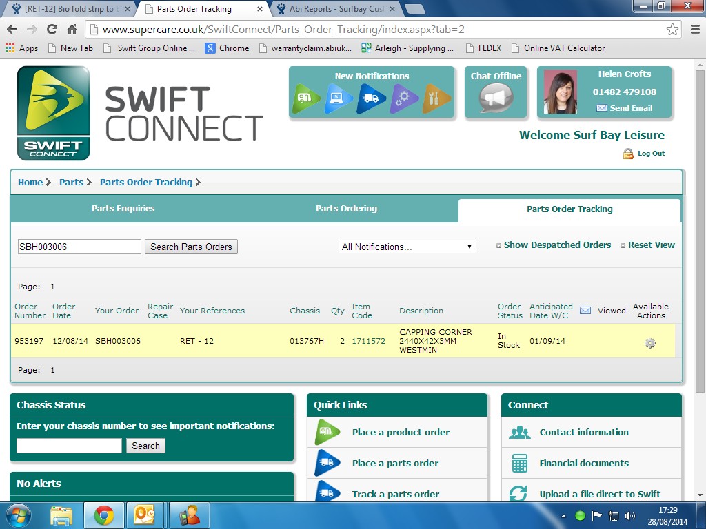 Lorraine Pryor (Inactive) added a comment - checked on swift and part is due in w/c 01.09.14