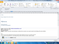Lorraine Pryor (Inactive) added a comment - The issue has just been emailed to: * adrienne@surfbay.co.uk *, \\ with subject: *( RET-12 ) Bio fold strip to be fitted in the en-suite to cover up the marks from the fitting of the wall vent fitted * \\  \\ and content:\\ ---- Ade, This is for Mr Oram replacement van are the parts being charged to his van ? for all the retro fit? If you can let me know then so I can charge the bio fold to the stock number thanks lorraine
