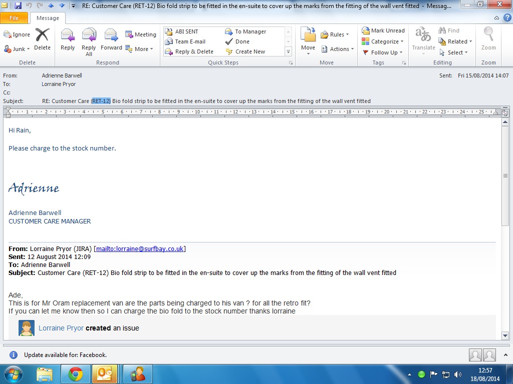 | Status | Reopened [ 4 ] | Awaiting Quote [ 10006 ] |