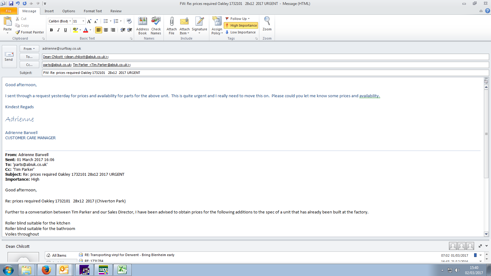 | Status | Quotation accepted [ 10008 ] | Parts ordered [ 3 ] |