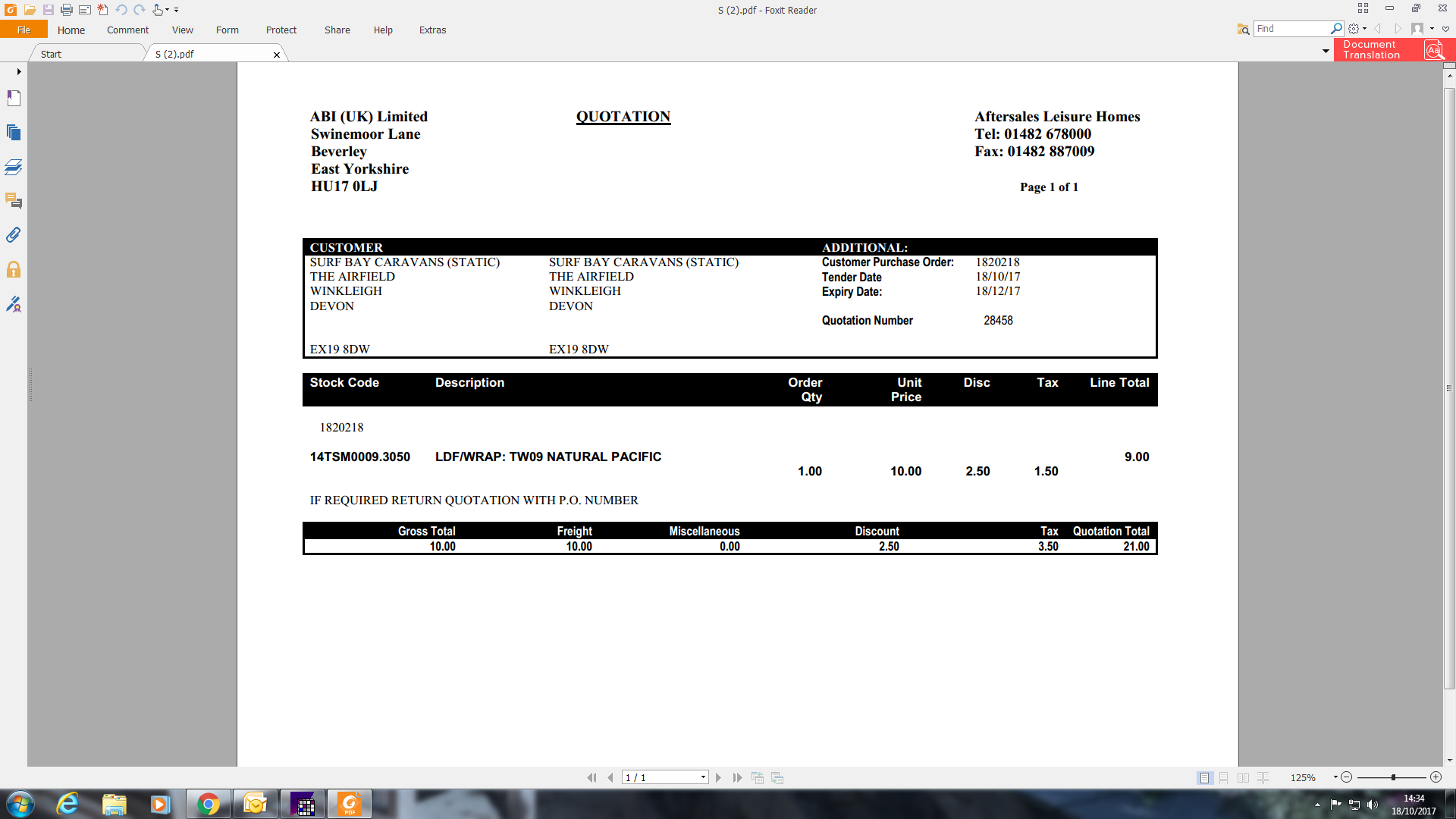 Steve's worksheet attached. He has said that it is 1 man 4 hours work and they would require 1 length of skirting also.