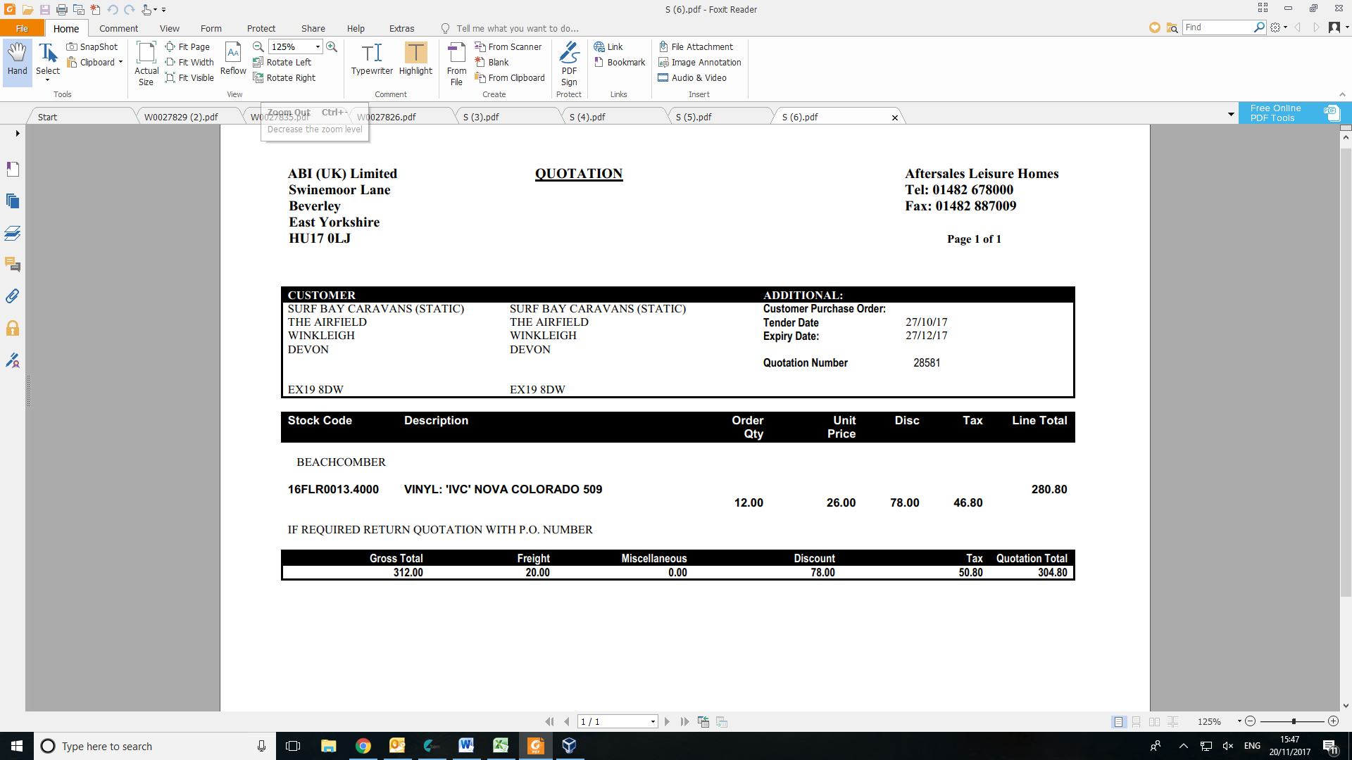 Quote from ABI received ordered using PO AS11204/50352