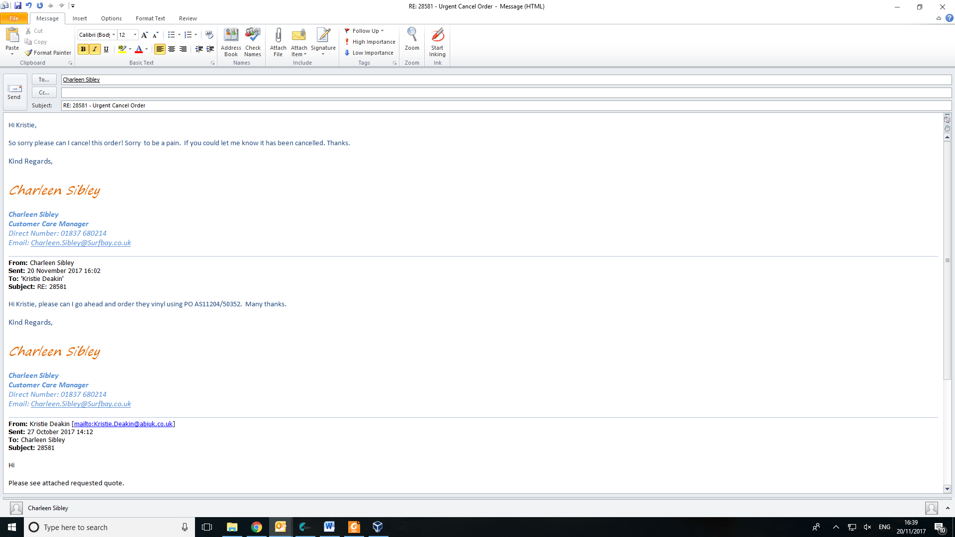 Charleen Sibley added a comment - Quote from ABI received ordered using PO AS11204/50352