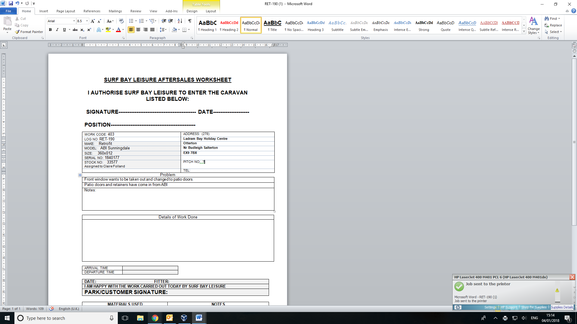 I have emailed Lorraine as I am not in till Tuesday.