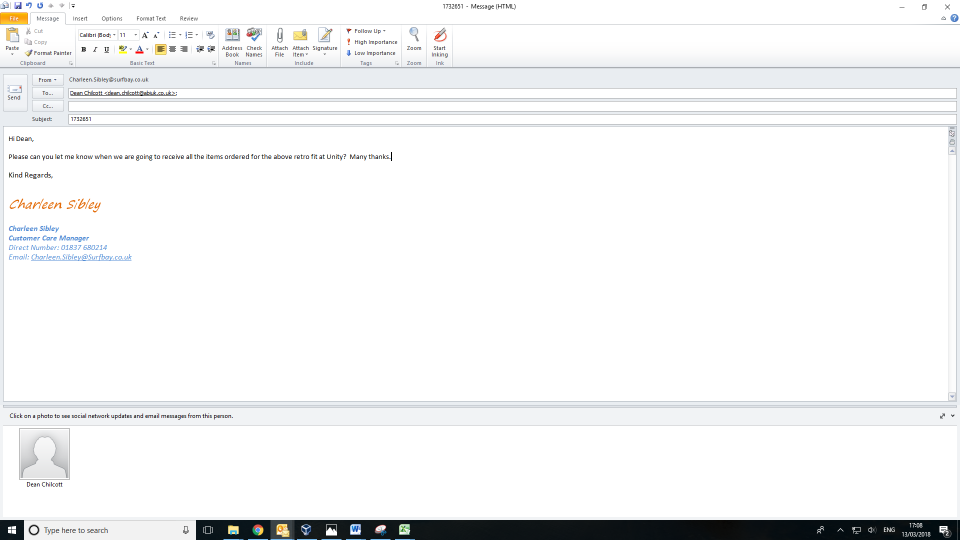Debbie Bartlett (Inactive) added a comment - I have chased this with Dean and he has advised that the parts are still on order. Call time 10.17.22am