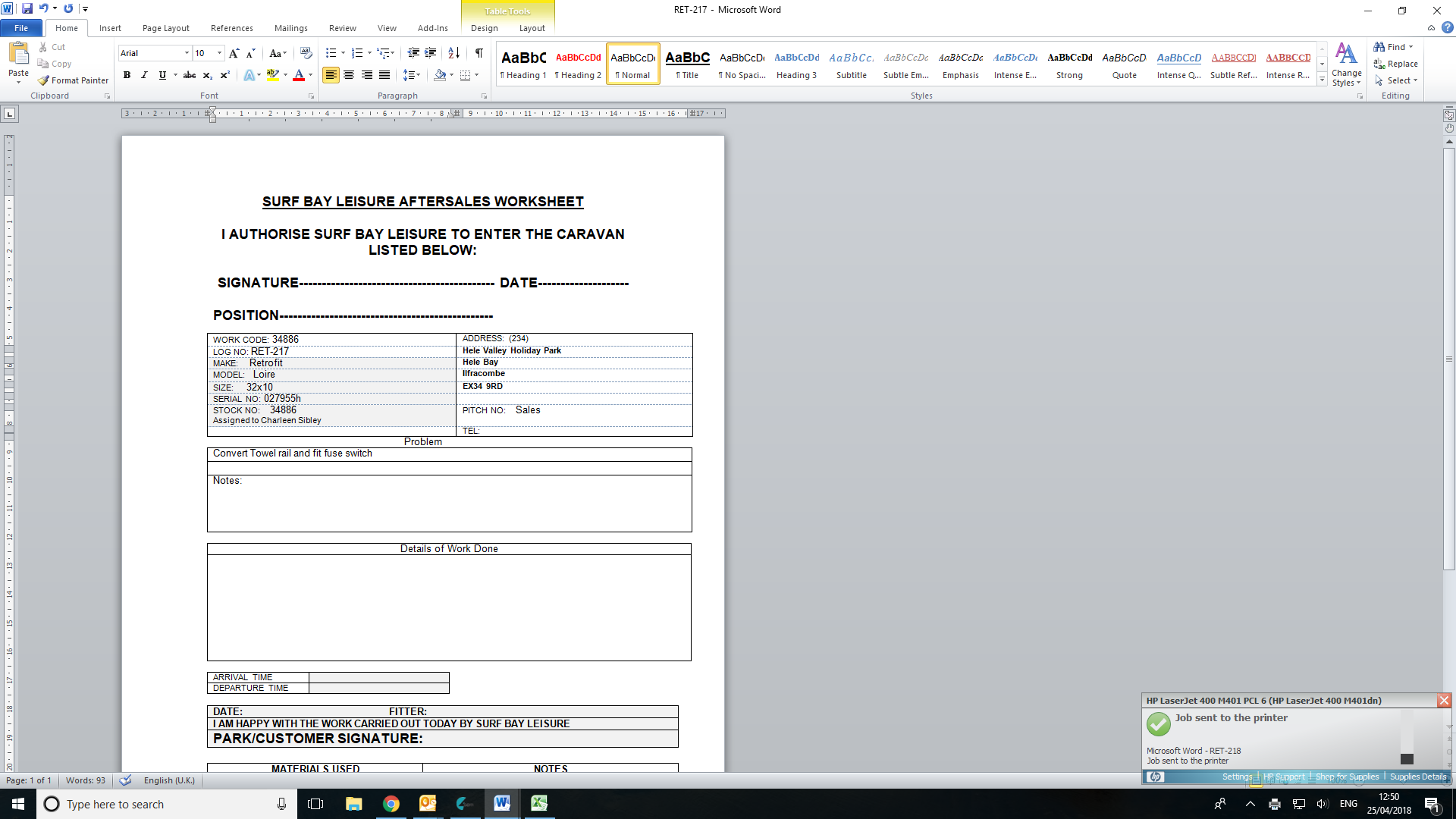 | Status | Parts Recieved [ 10003 ] | Worksheet Issued [ 10004 ] |
