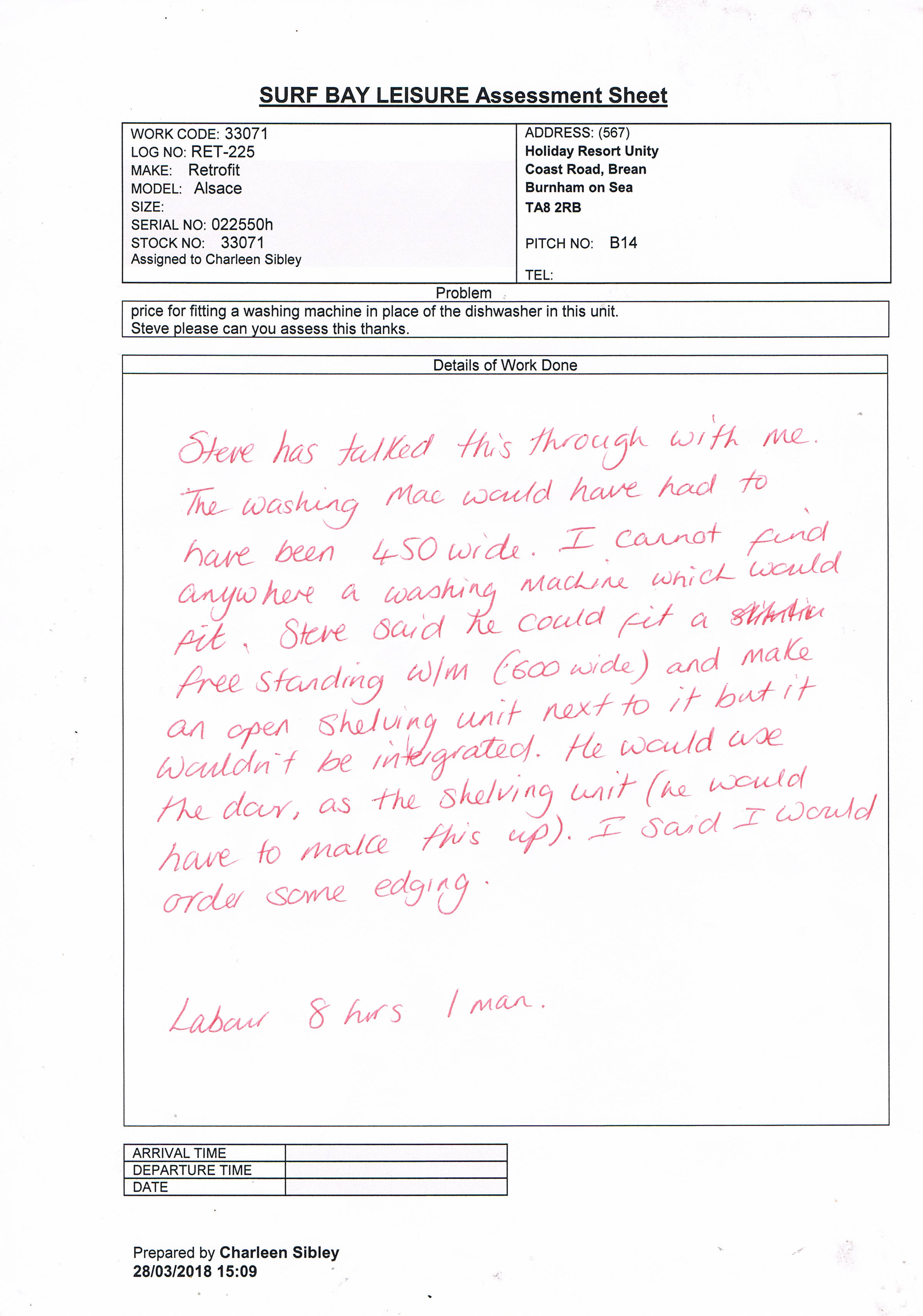 Can you get Surf bay to get us a price for fitting a washing machine in place of the dishwasher in this unit.