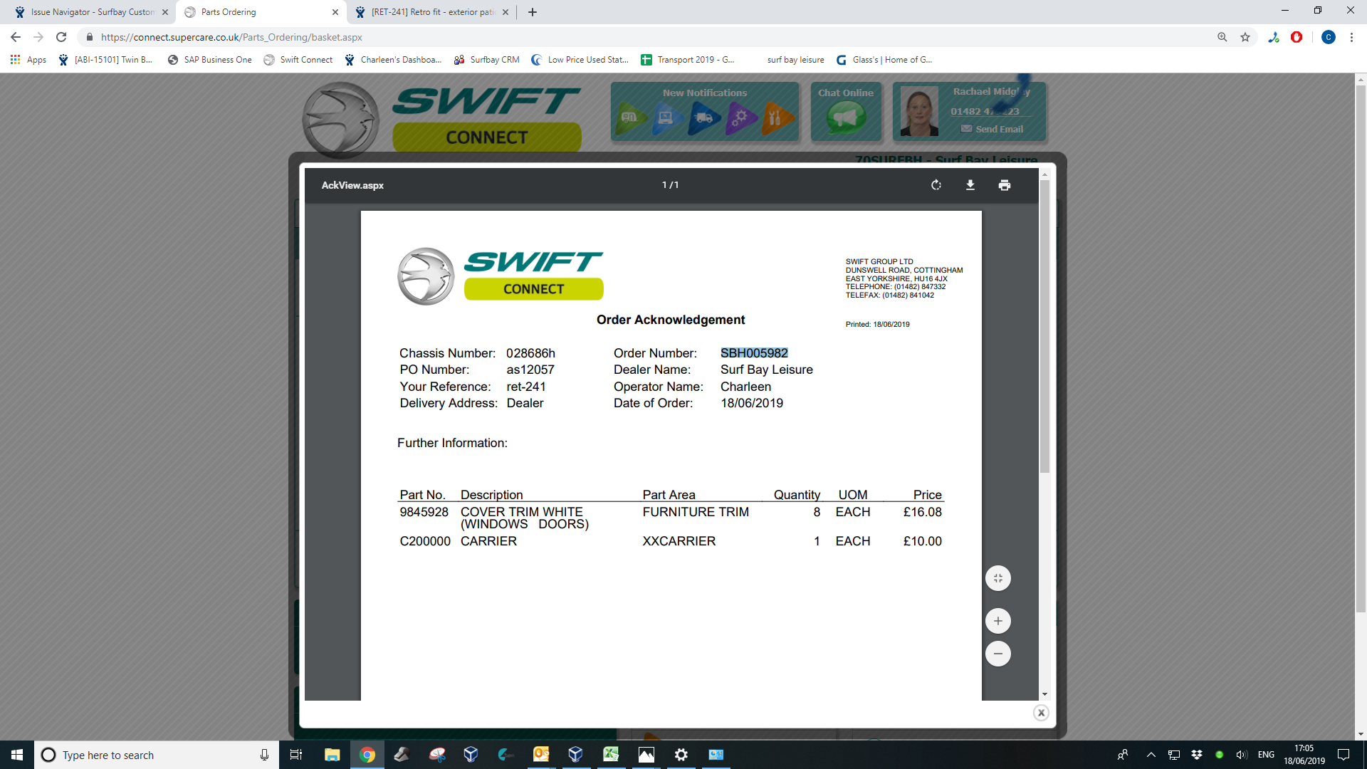 Booked parts against van but still need to do labour when we complete the job. |