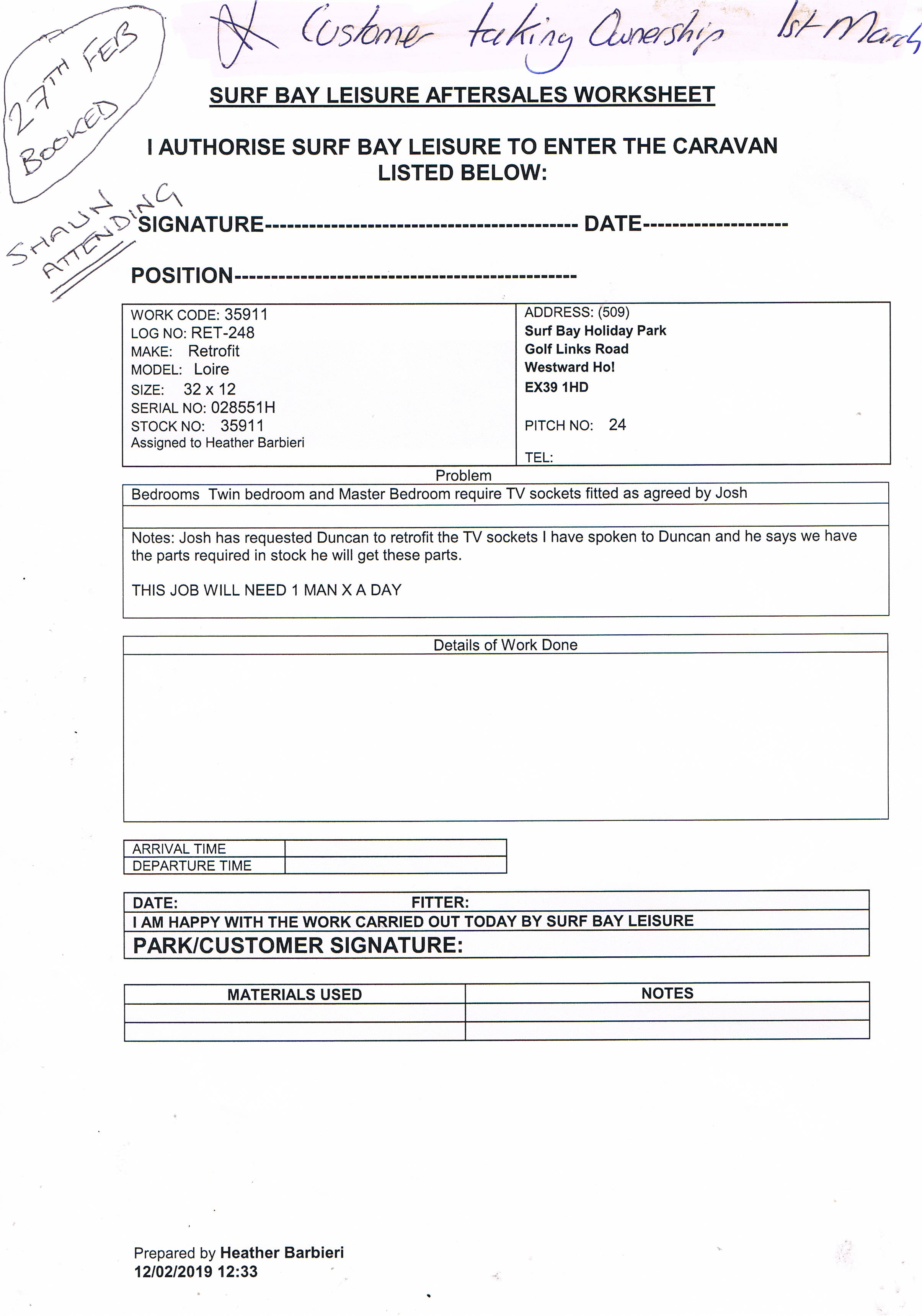 Heather Barbieri (Inactive) added a comment - Job sheet raised for Dunca