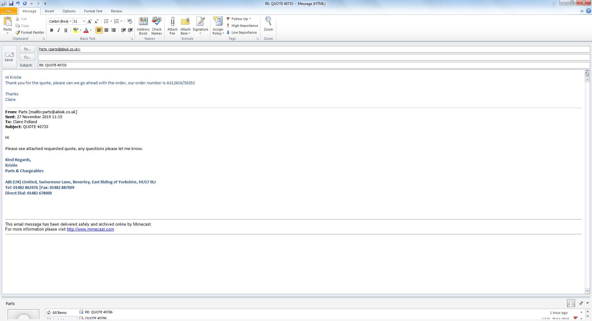 Parts received I have issued a delivery note