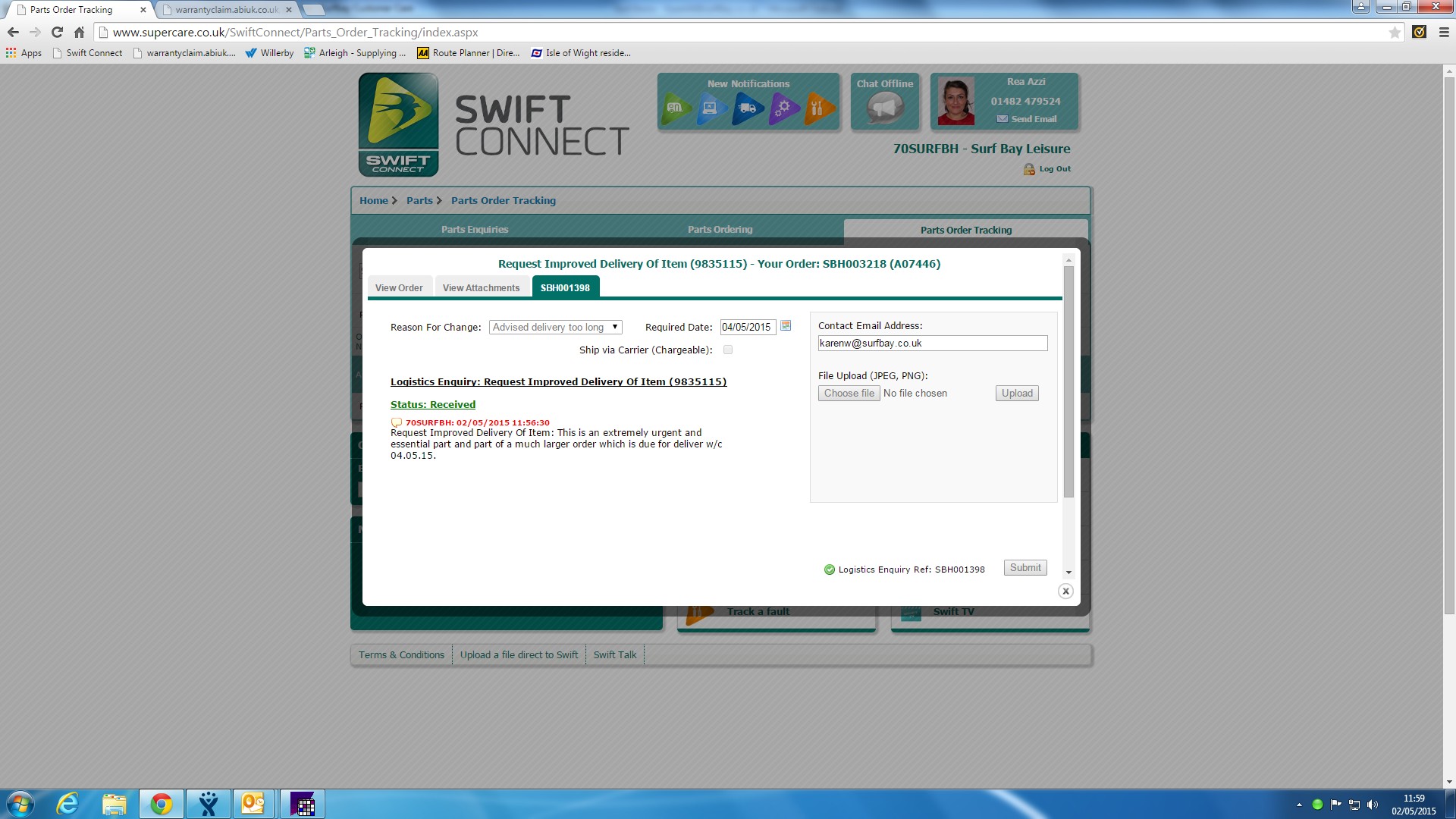 | Attachment | Earlier delivery requested 02.05.15.jpg [ 89636 ] |