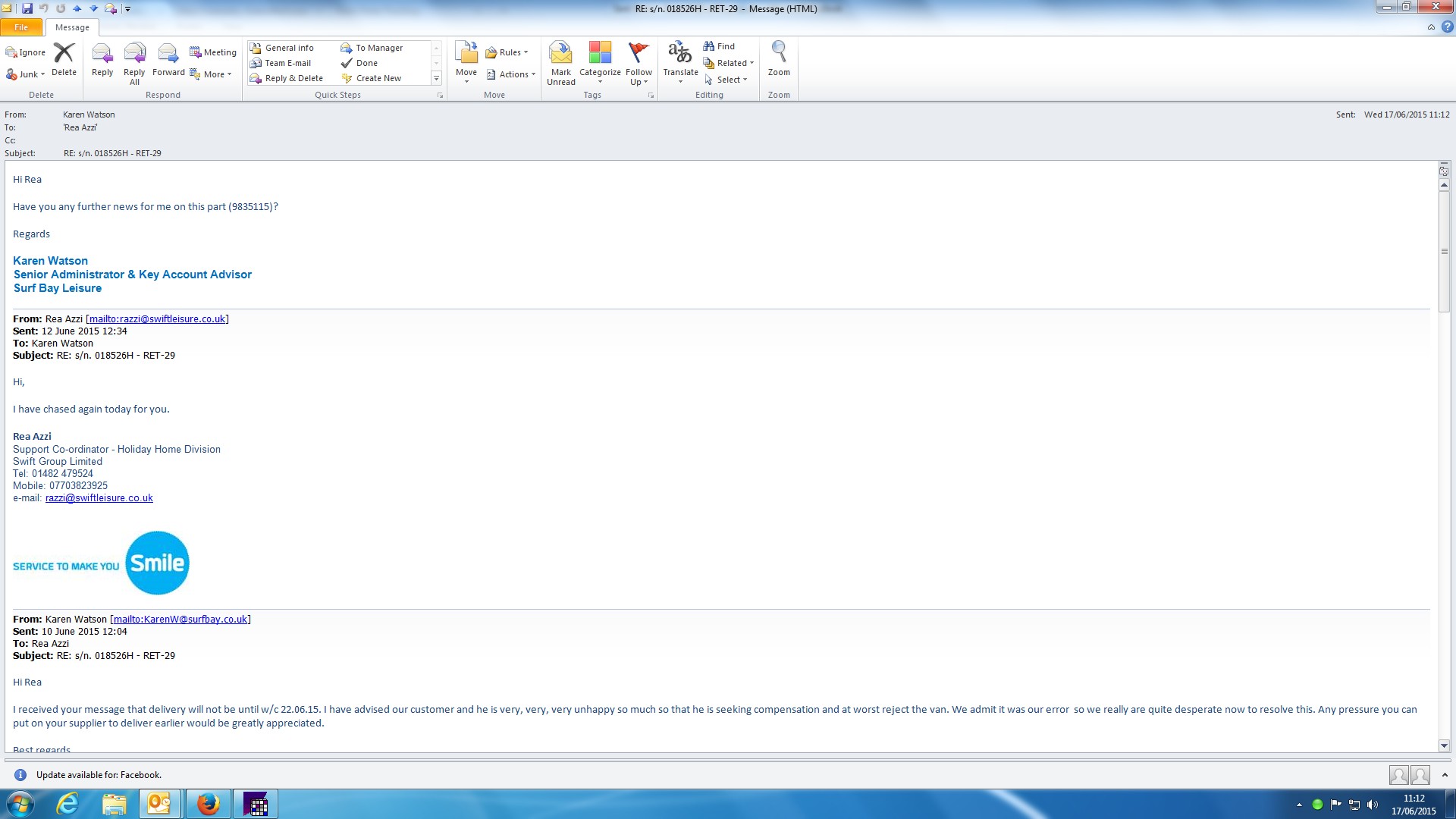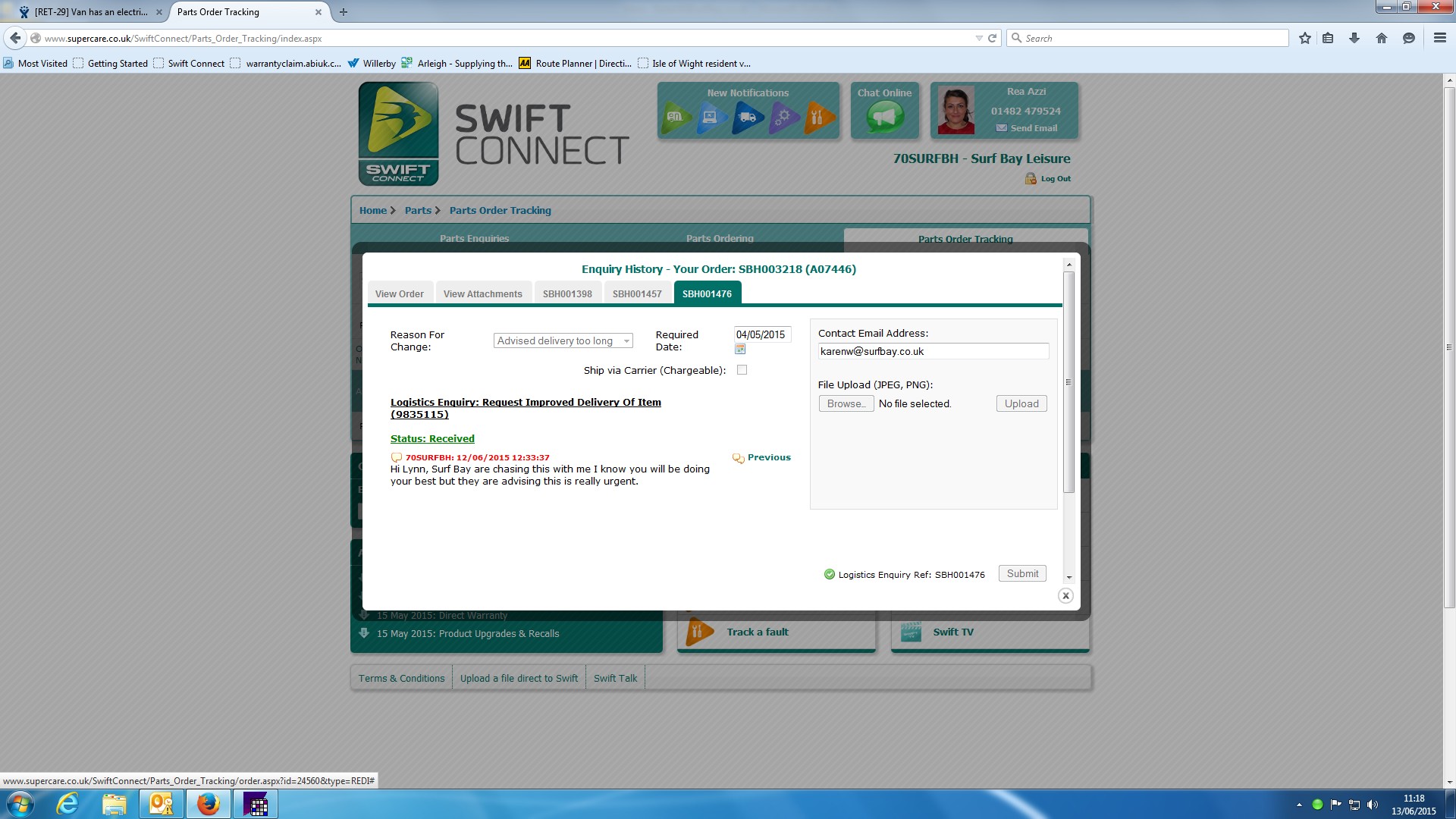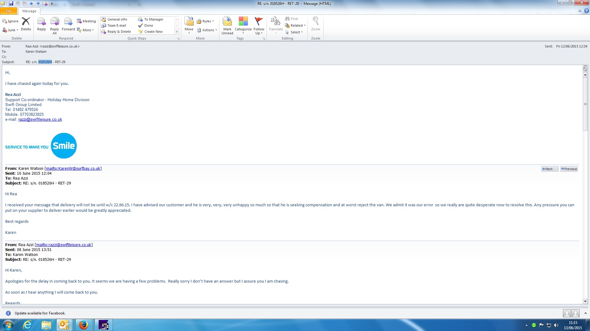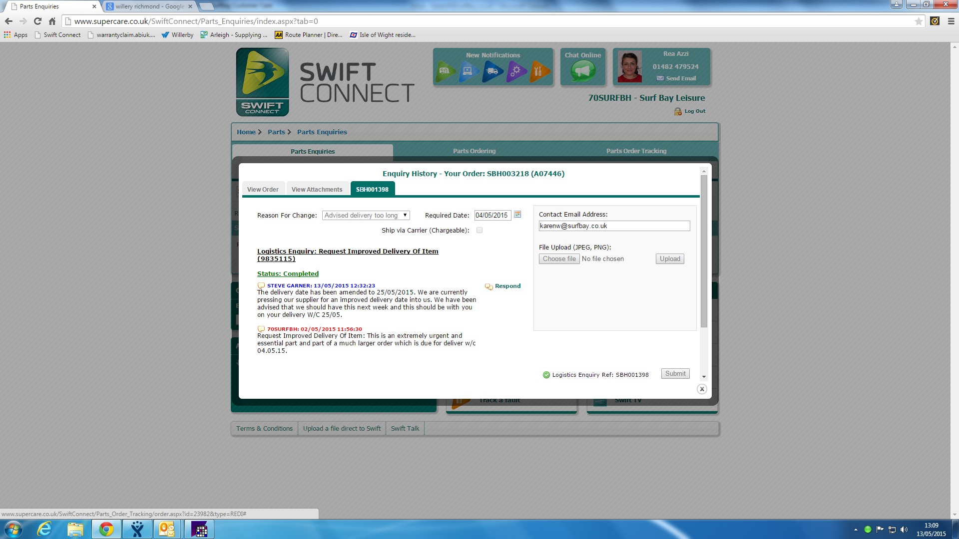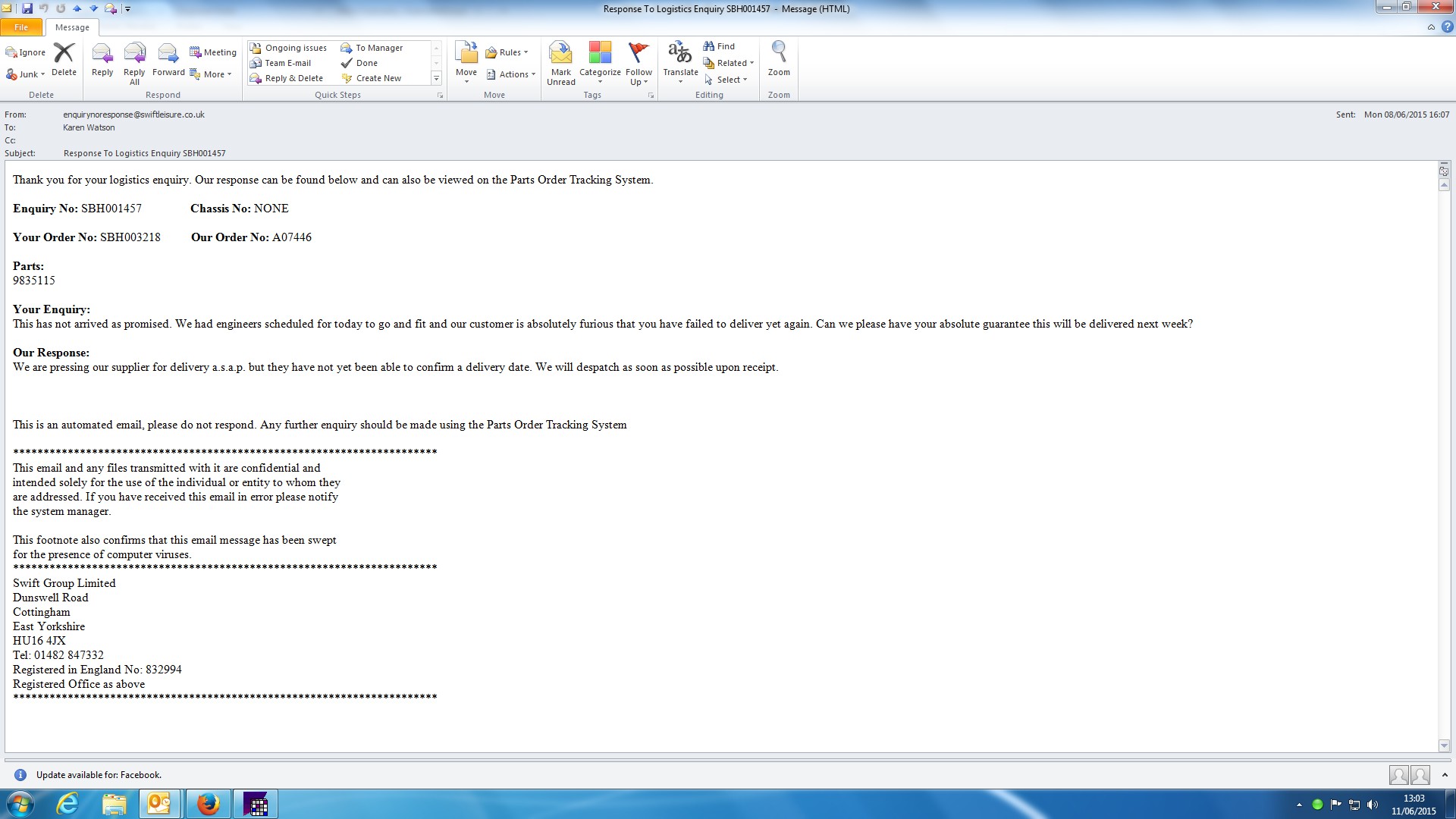 | Attachment | Reply from Swift re earlier delivery request.jpg [ 90684 ] |