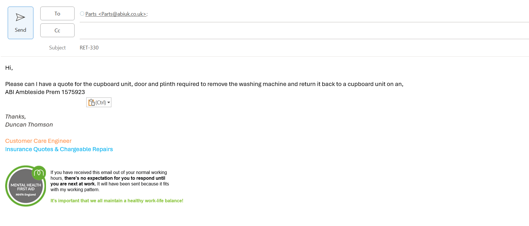 The customer of this one (private land) wants us to remove the washing machine and change it back to a cupboard. We were planning on doing this in another Ambleside but they decided to keep it in the end - I assume we don't still have the required parts?