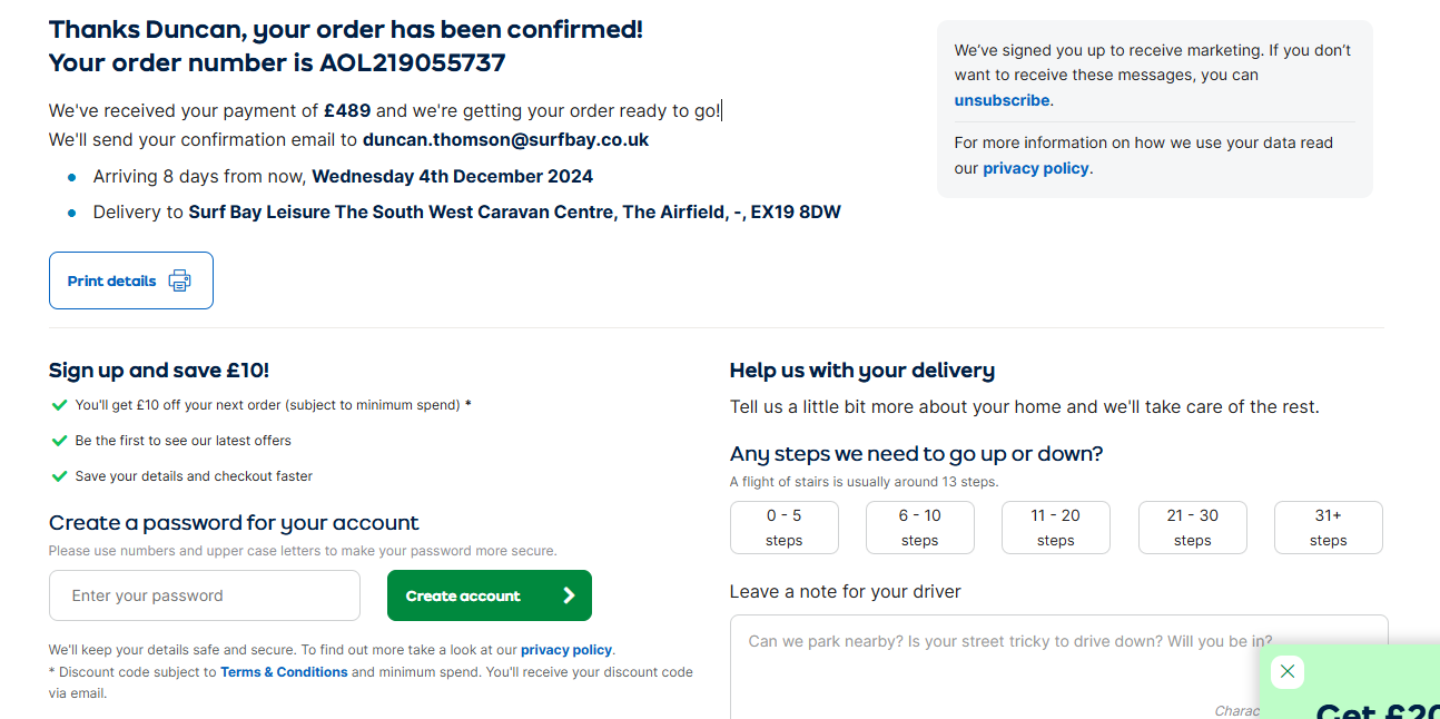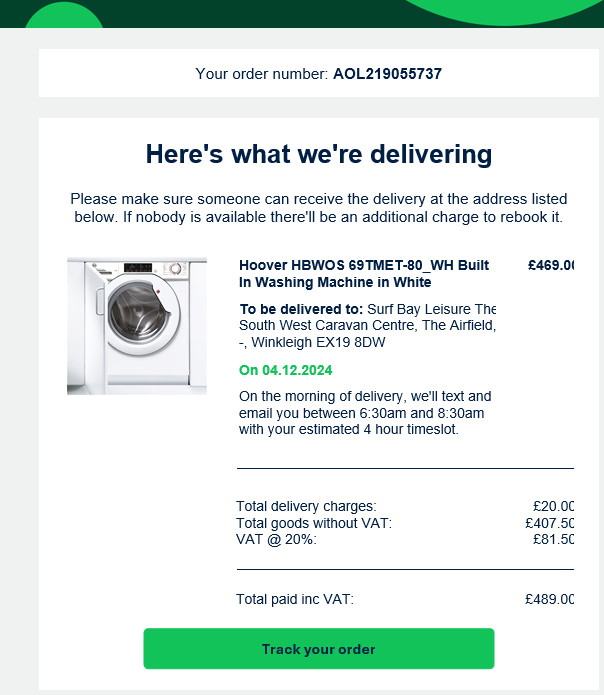 Parkers Farm have purchased a 2024 ABI Beverley 39 x 12 via Richard Law. Stock number 41364 We have agreed to fit a washing machine when it arrives on site, my understanding is we have removed one from another caravan. I currently do not have a delivery date but wanted you to be aware in case the park calls.