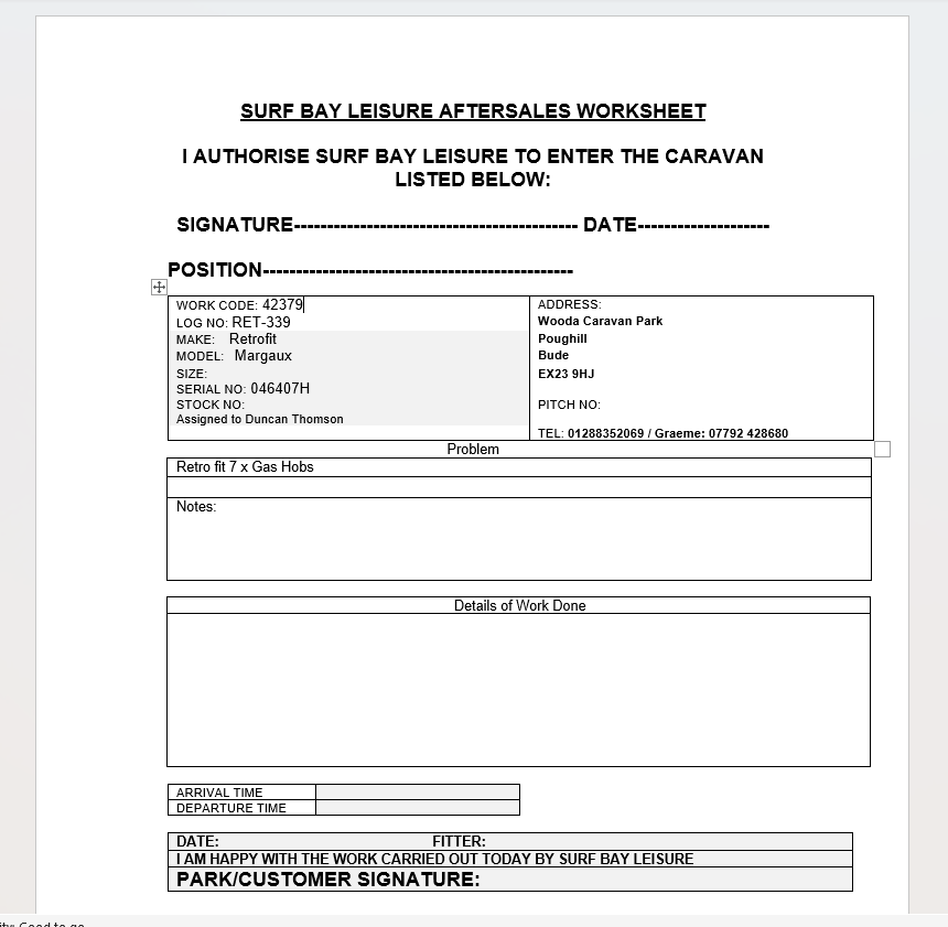 | Park_Phone | 01288352069 / Graeme: 07792 428680 | |