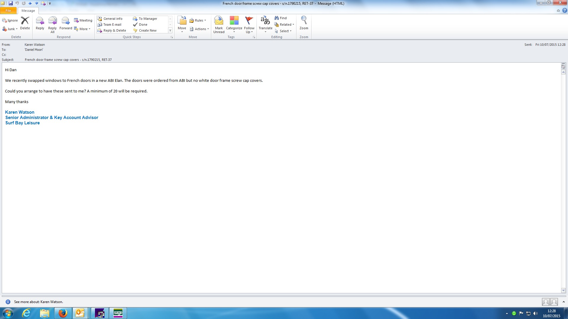 Karen Watson (Inactive) added a comment - Keith completed work on 17.08.15