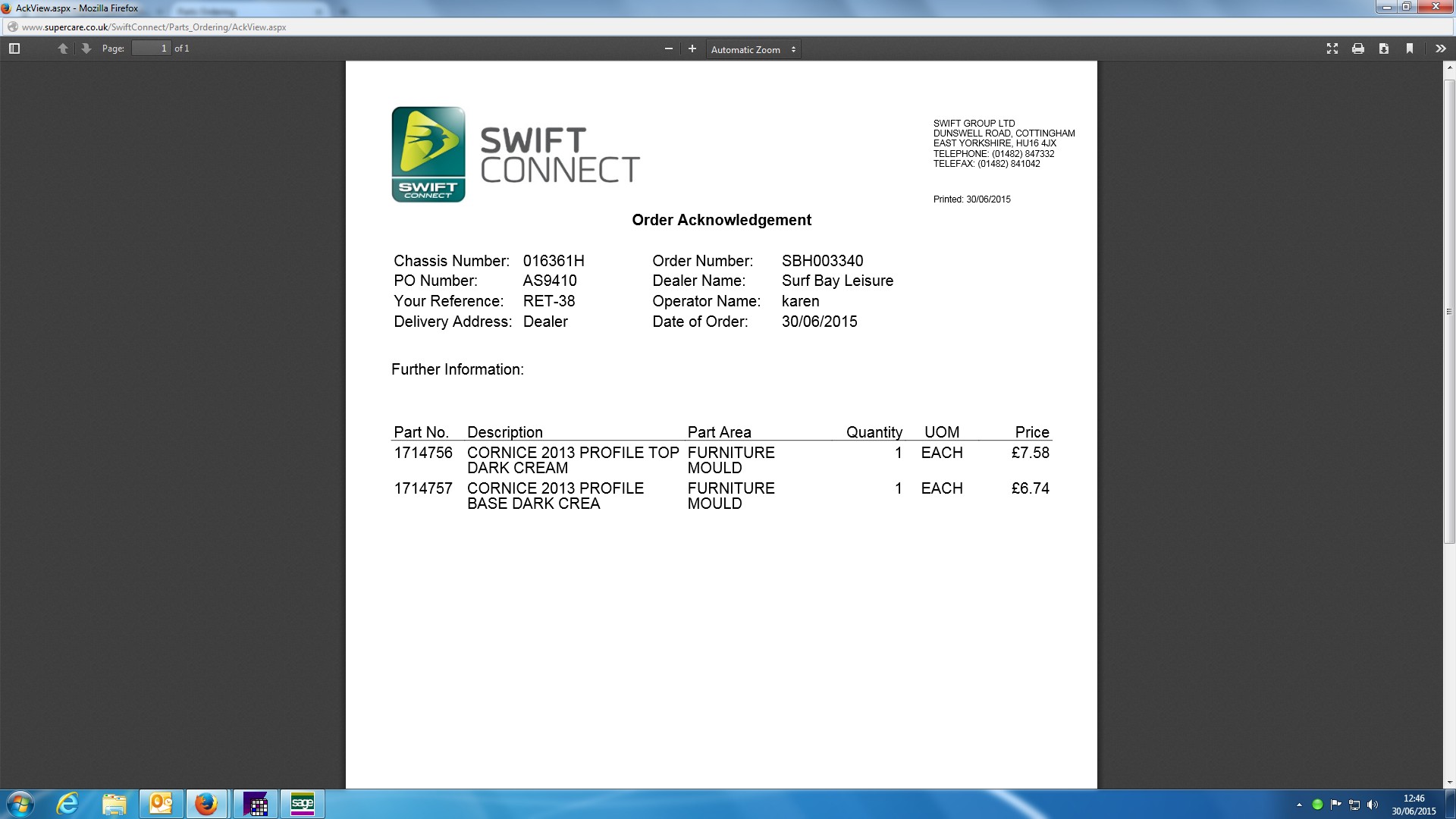Ordered cornice both top and base (as per Ade) from Swift - AS9410/5041