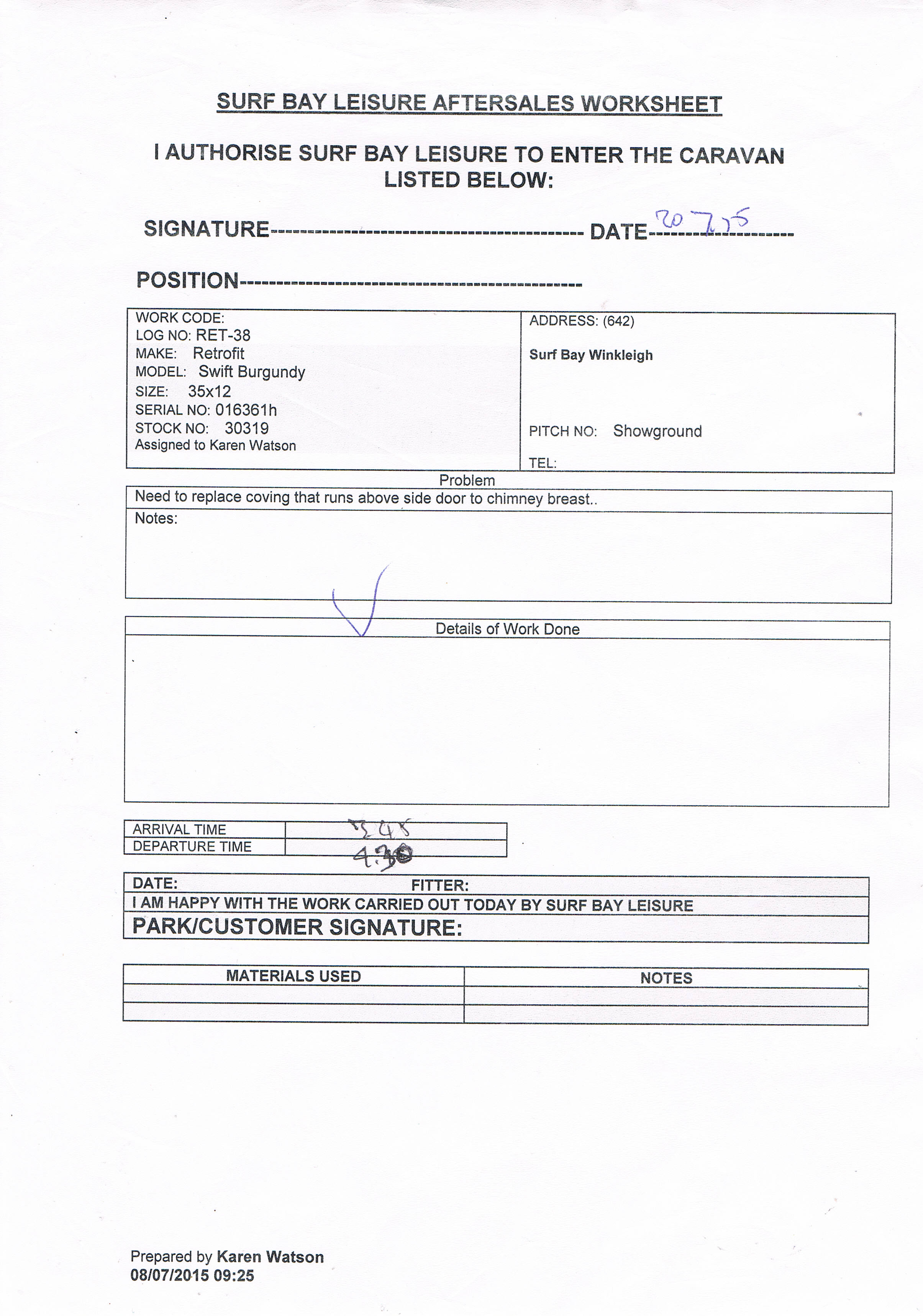 Nikki Milling (Inactive) added a comment - Job sheet returned. Completed.
