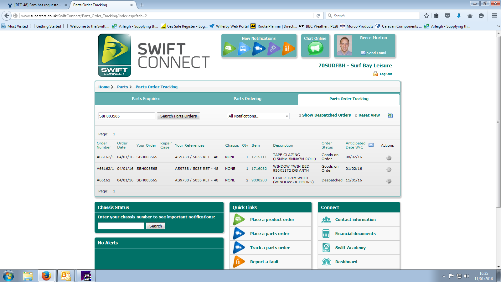 | Status | Quotation accepted [ 10008 ] | Parts ordered [ 3 ] |
