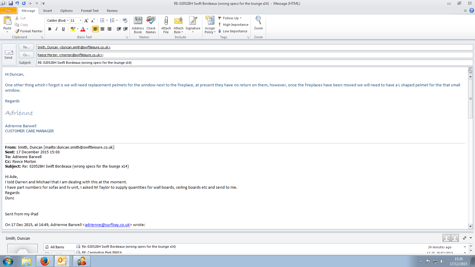 | Summary | Unit was ordered with the lounge the oposite way round | Unit was ordered with the lounge the opposite way round |