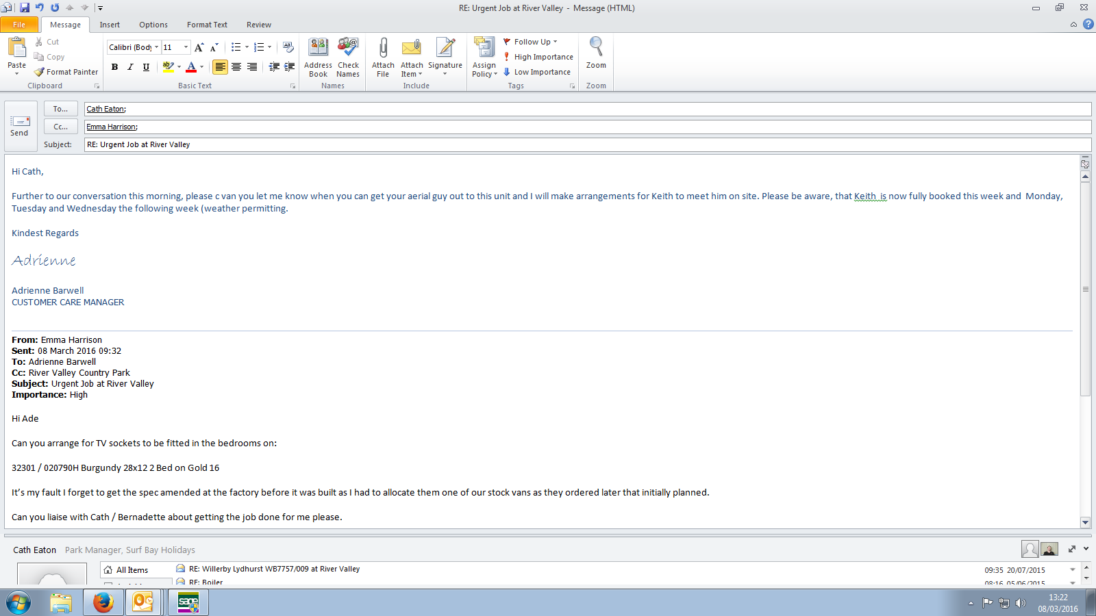 I have spoken to Cath, she thinks that she will need to book their aerial guy and then us send the details of when they would like Keith to attend.