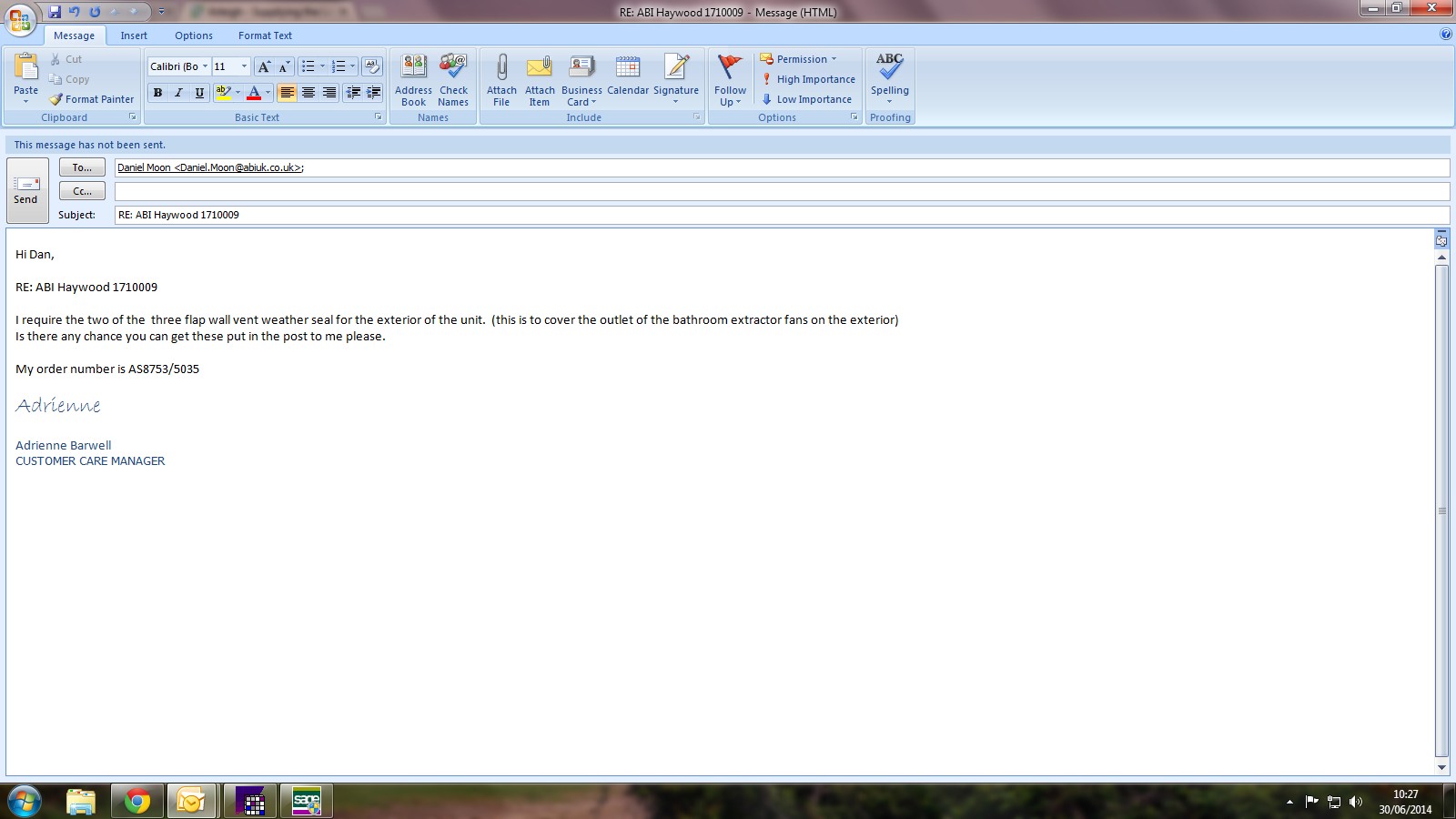 Claire Folland added a comment - received white vent cover, 1 put into stock, issued worksheet