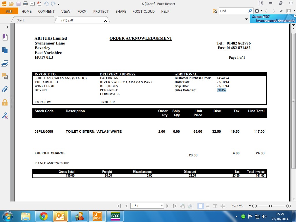 | ID Number | 096159 order as of 23.10.14 |