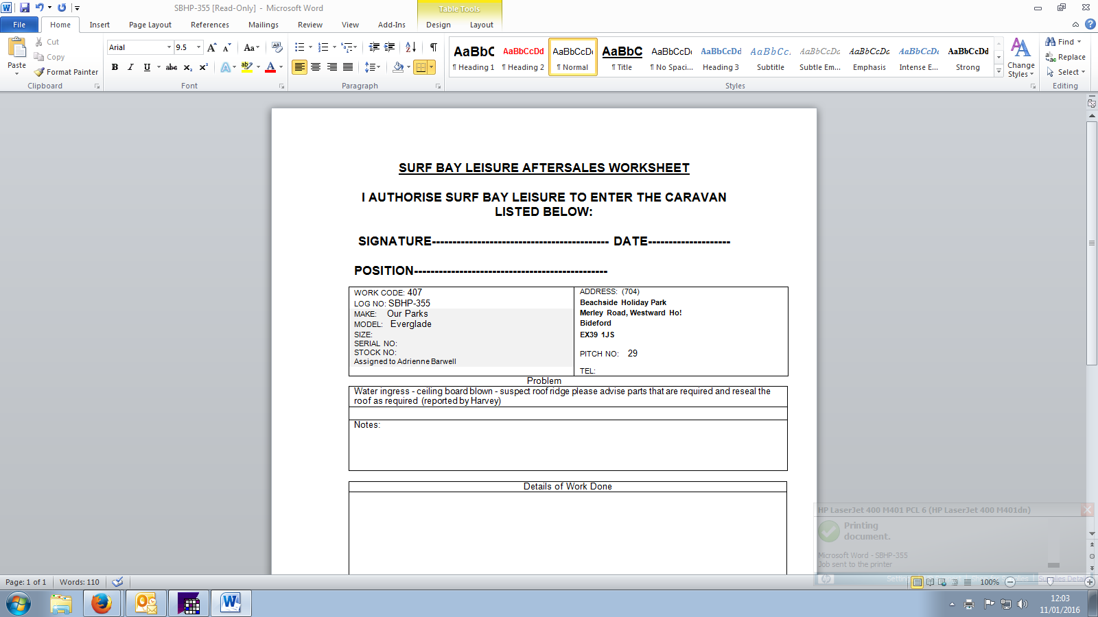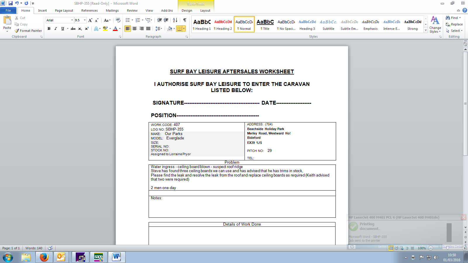 | Status | Parts Recieved [ 10003 ] | Worksheet Issued [ 10004 ] |