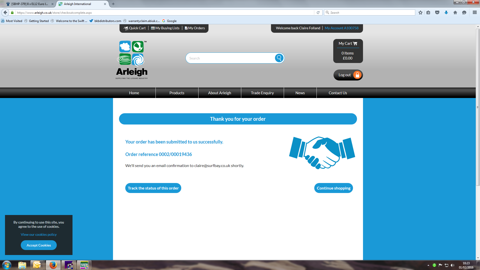 Ellie W (Inactive) added a comment - Arleigh invoice received Stock adjusted on sage