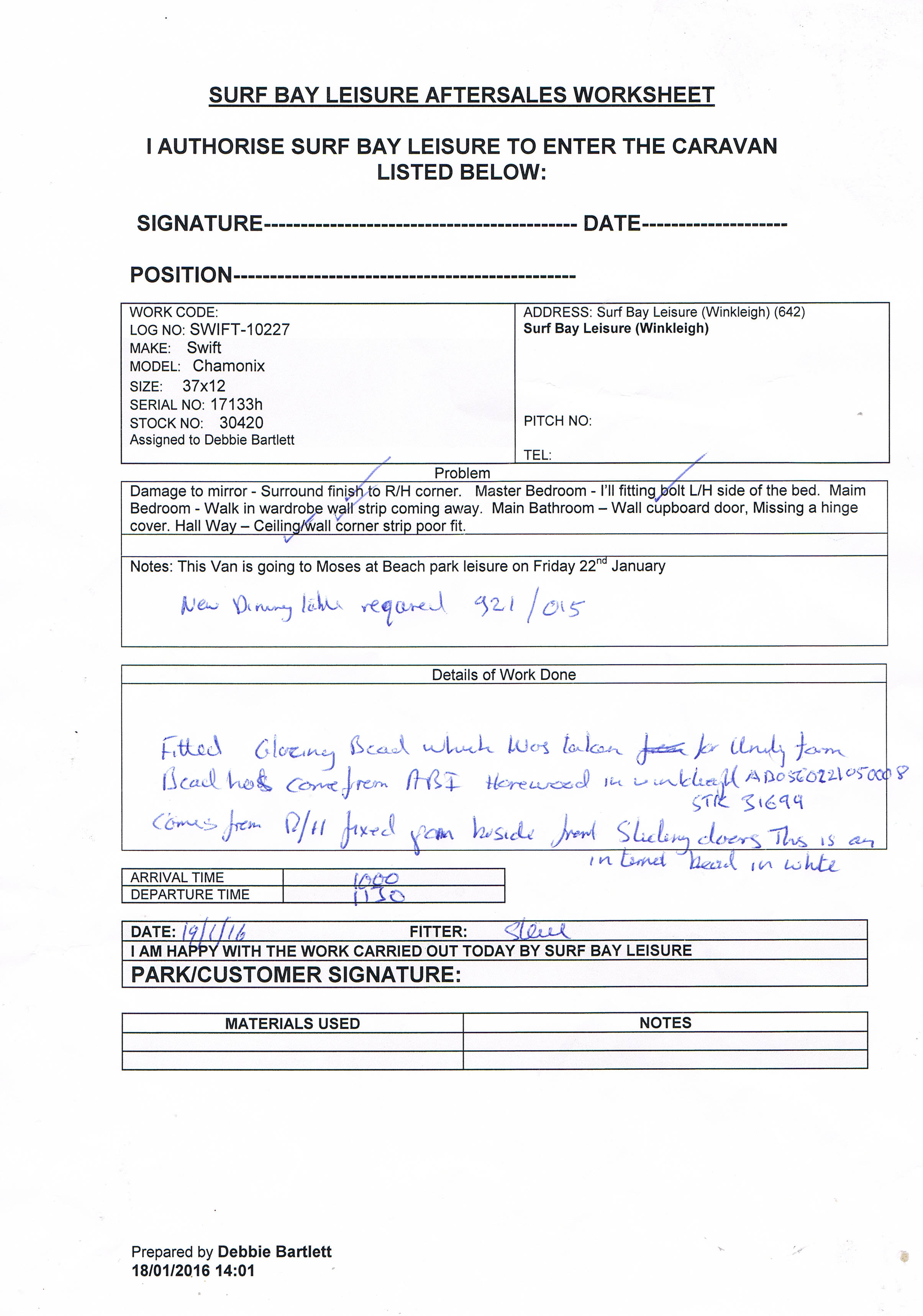 Claire Folland added a comment - recieved glazing bead from ABI, issued worksheet, steve needs to check this before he goes to site