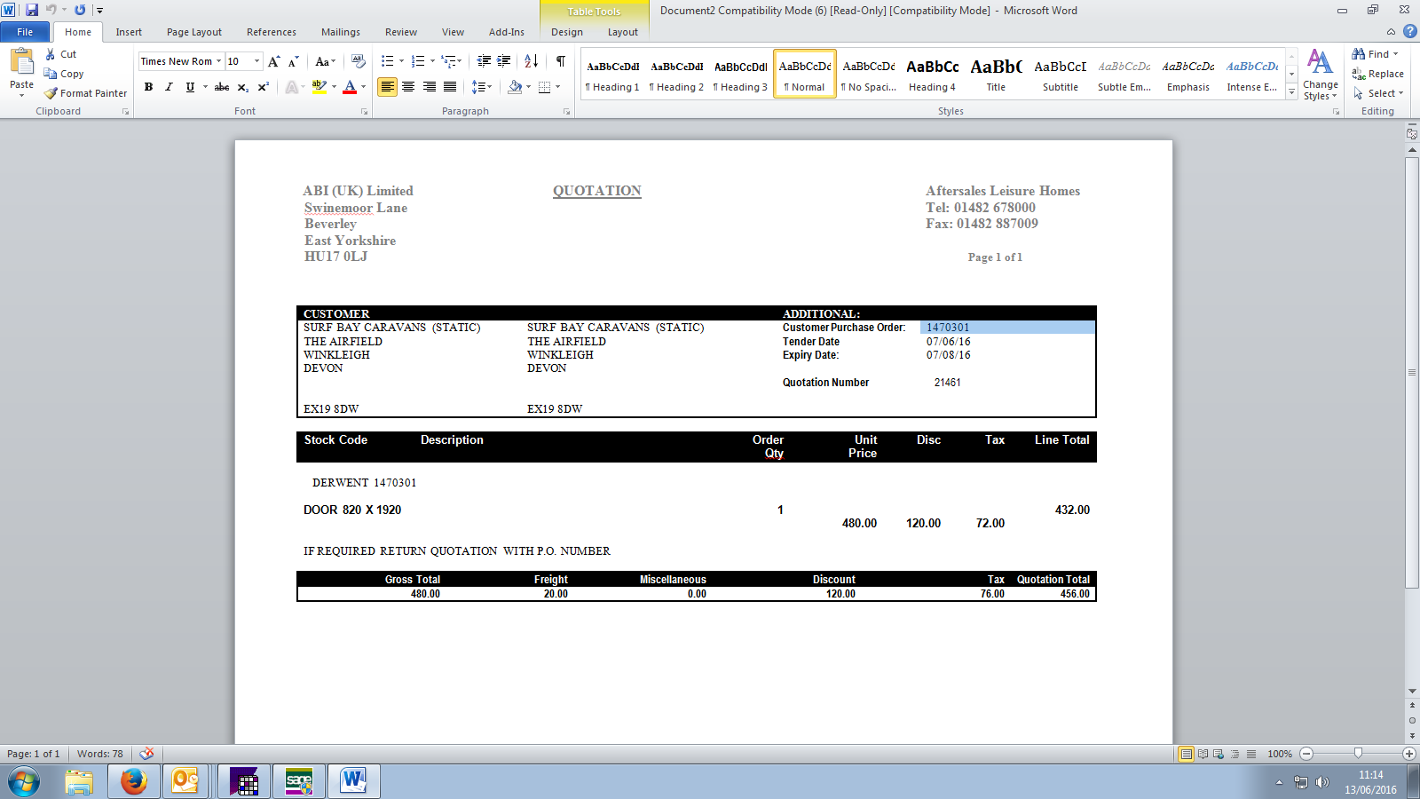 Dean has replied to me and said that he does not normally quote for the door frame because in the past it has not matched up with the hinges (email attached) he has suggested that he quotes for the whole door instead. I will ask for this but would imagine it will be particularly expensive