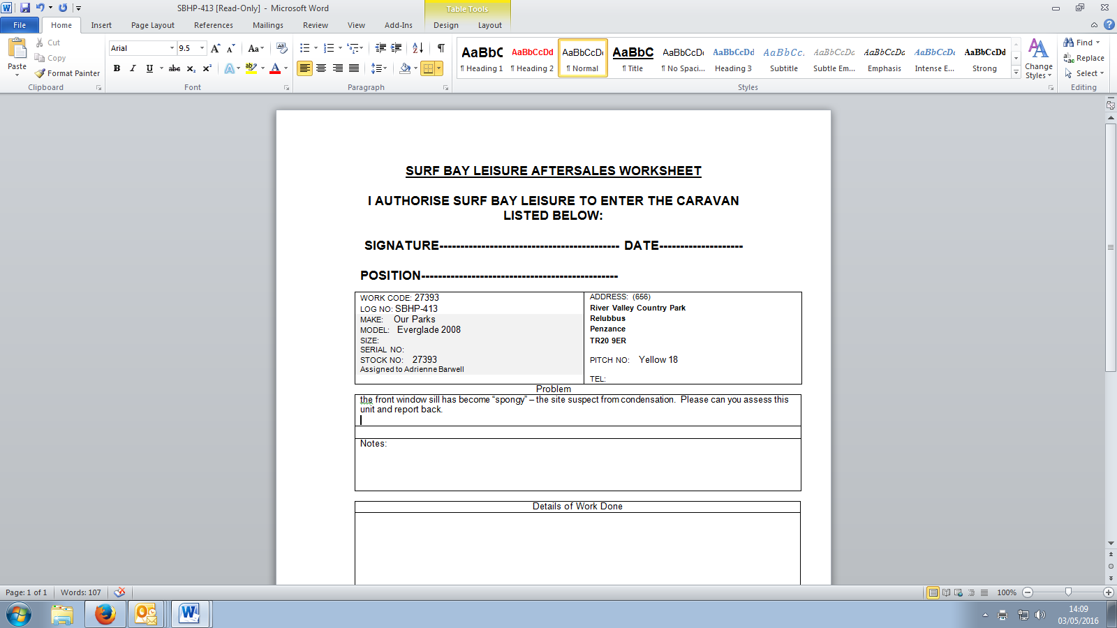 Ellie W (Inactive) added a comment - Worksheet returned, work completed by Steve