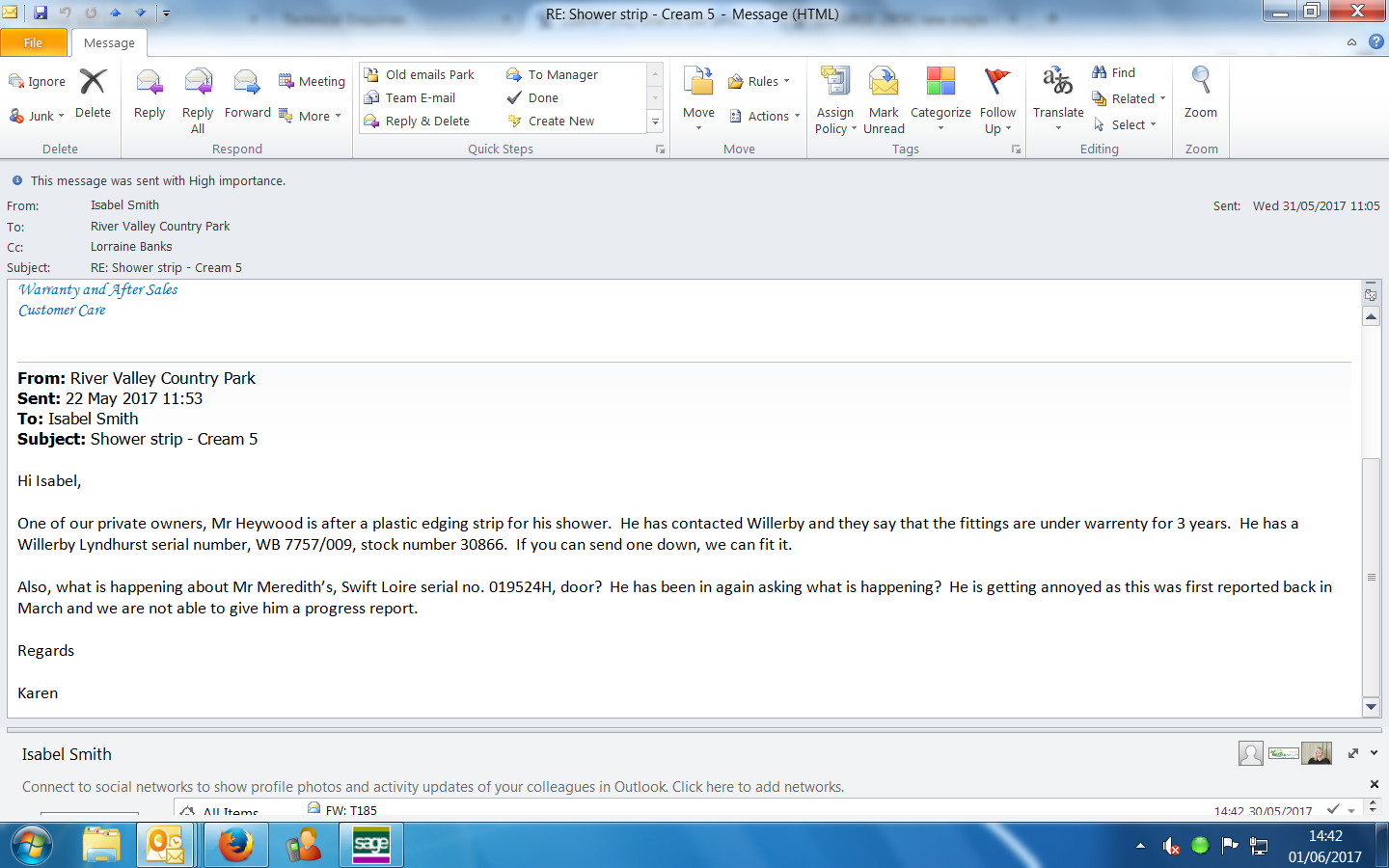Bathroom - shower plastic trim is coming off. -- need a Surfbay engineer ASAP to fit this part as we have been waiting way too long