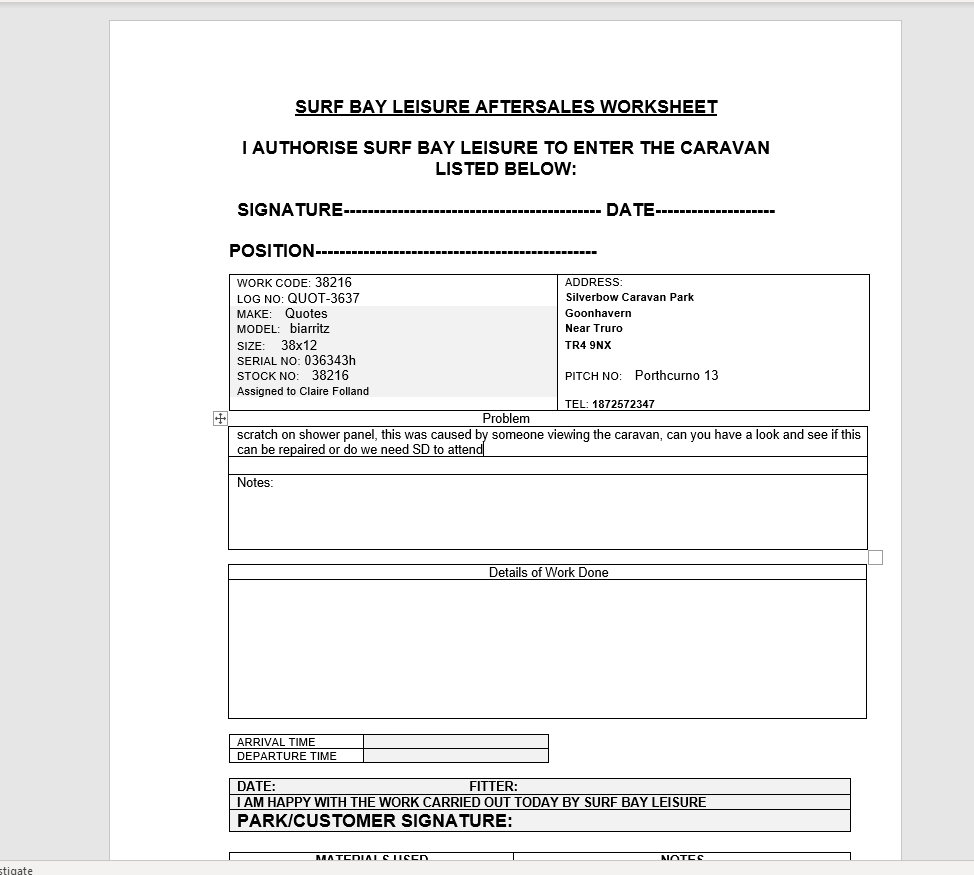 Claire Folland added a comment - issued worksheet for Duncan to have another look
