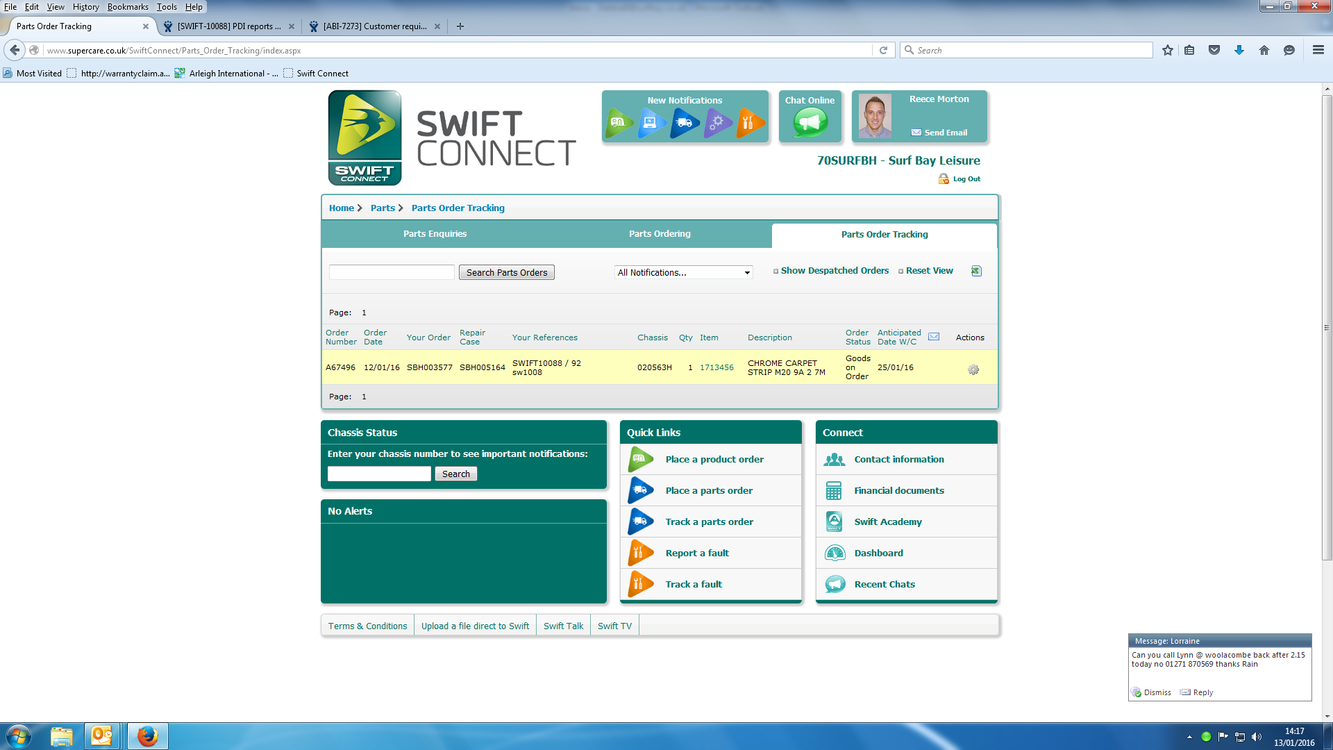 | Attachment | Swift ack parts despatched..png [ 109596 ] |