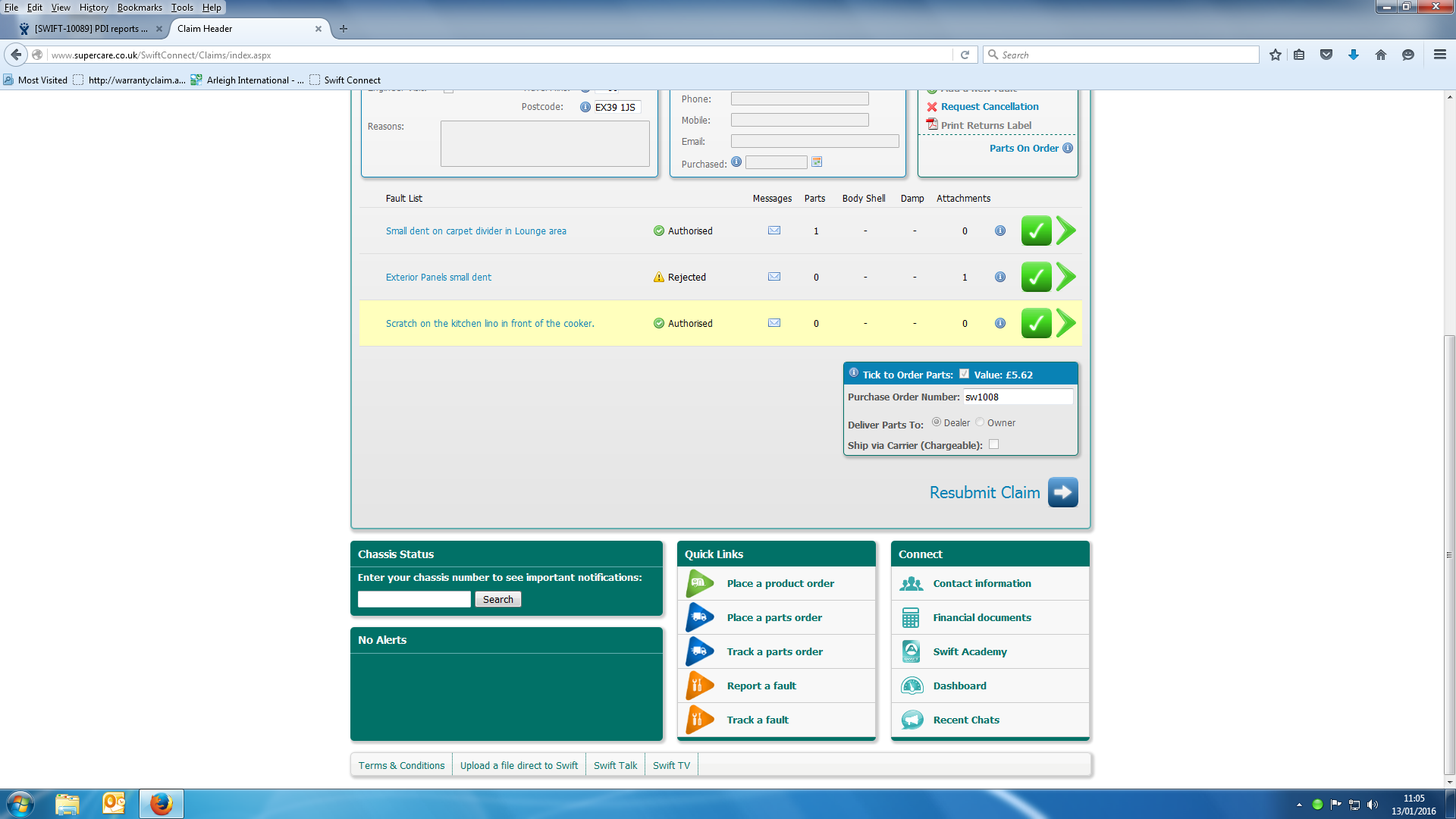 Claim authorised by swift.