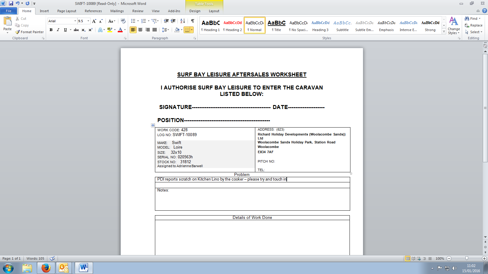 Nikki Curtis (Inactive) added a comment - Steve has attended, work complete. Worksheet attached.