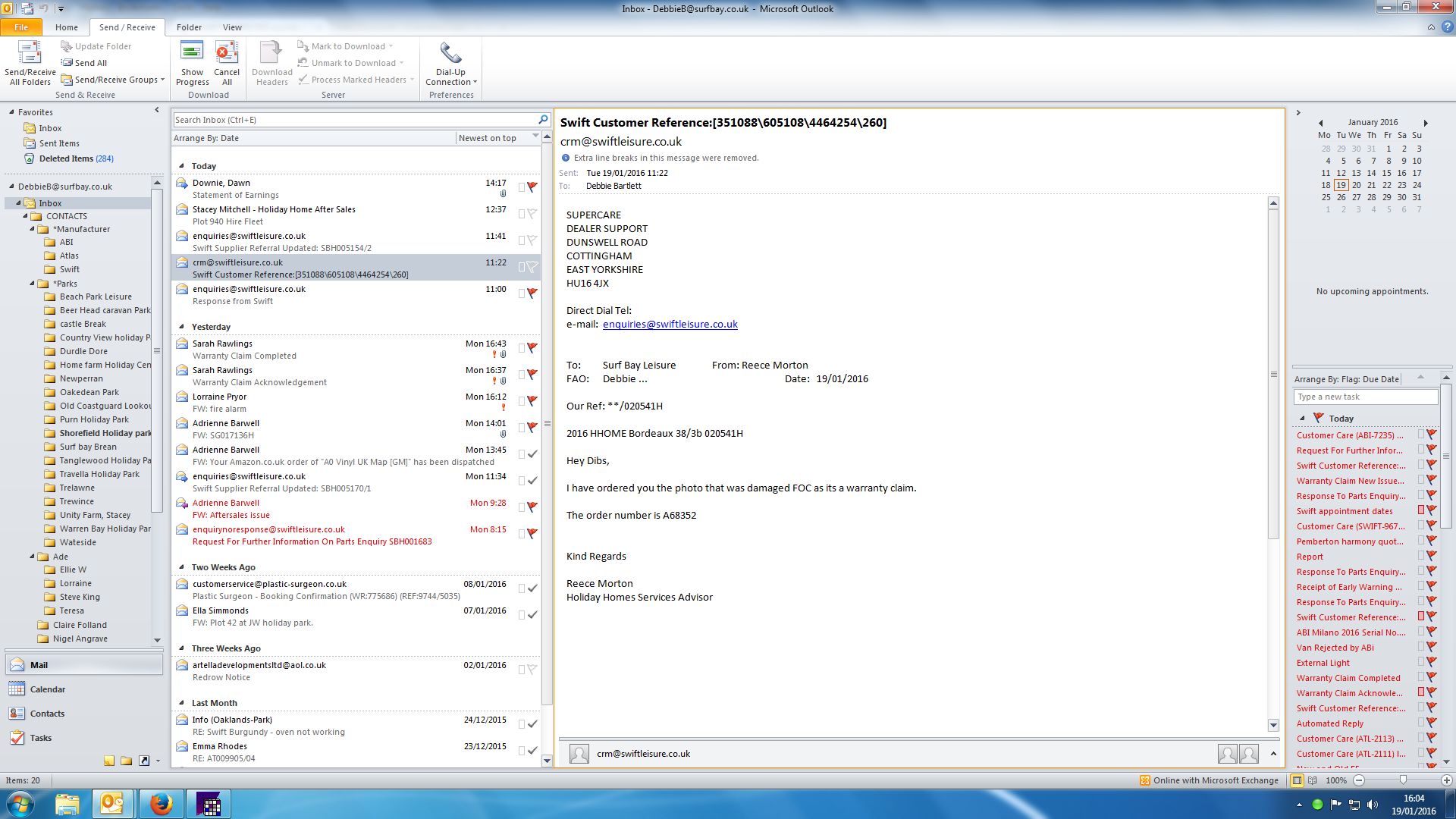Reece has ack that swift have ordered a replacement mirror.