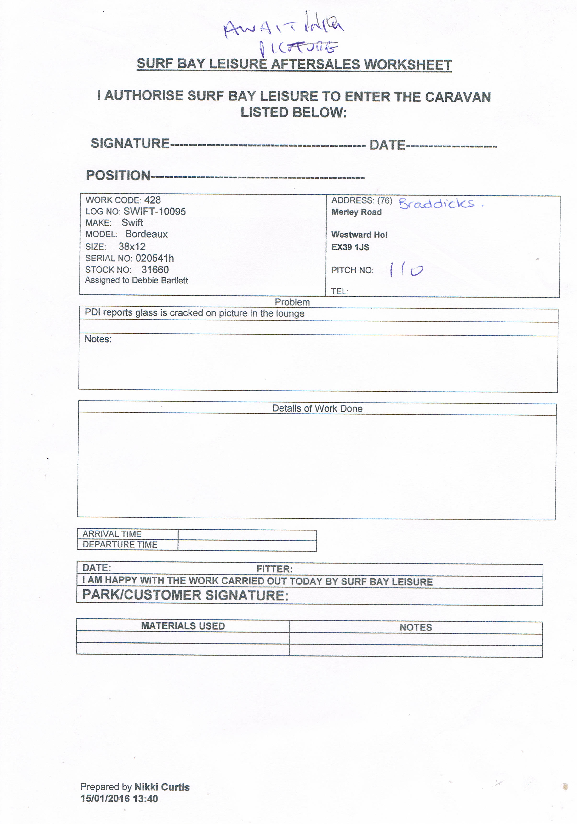 recieved replacement picture, issued worksheet