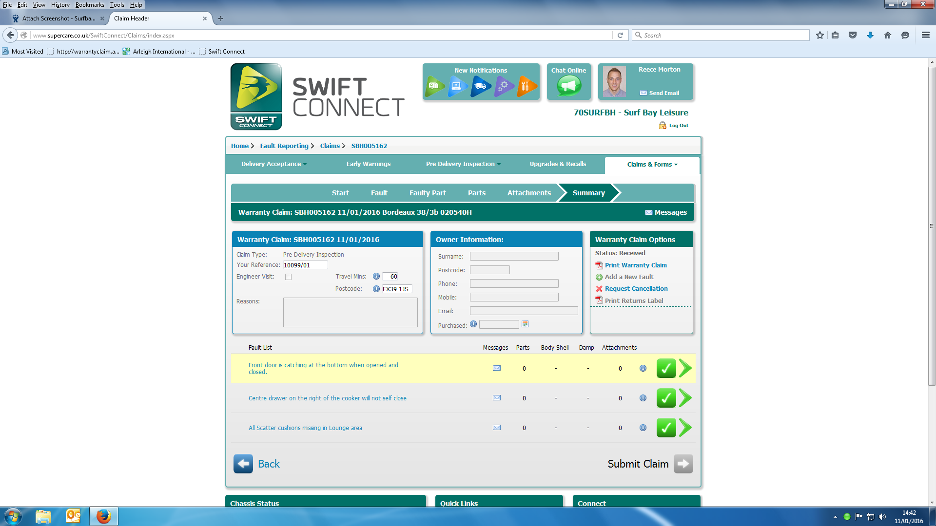 Debbie Bartlett (Inactive) added a comment - - edited Swift have rejected this claim. I have challenged this and Lisa will sign this off and order the cushions.