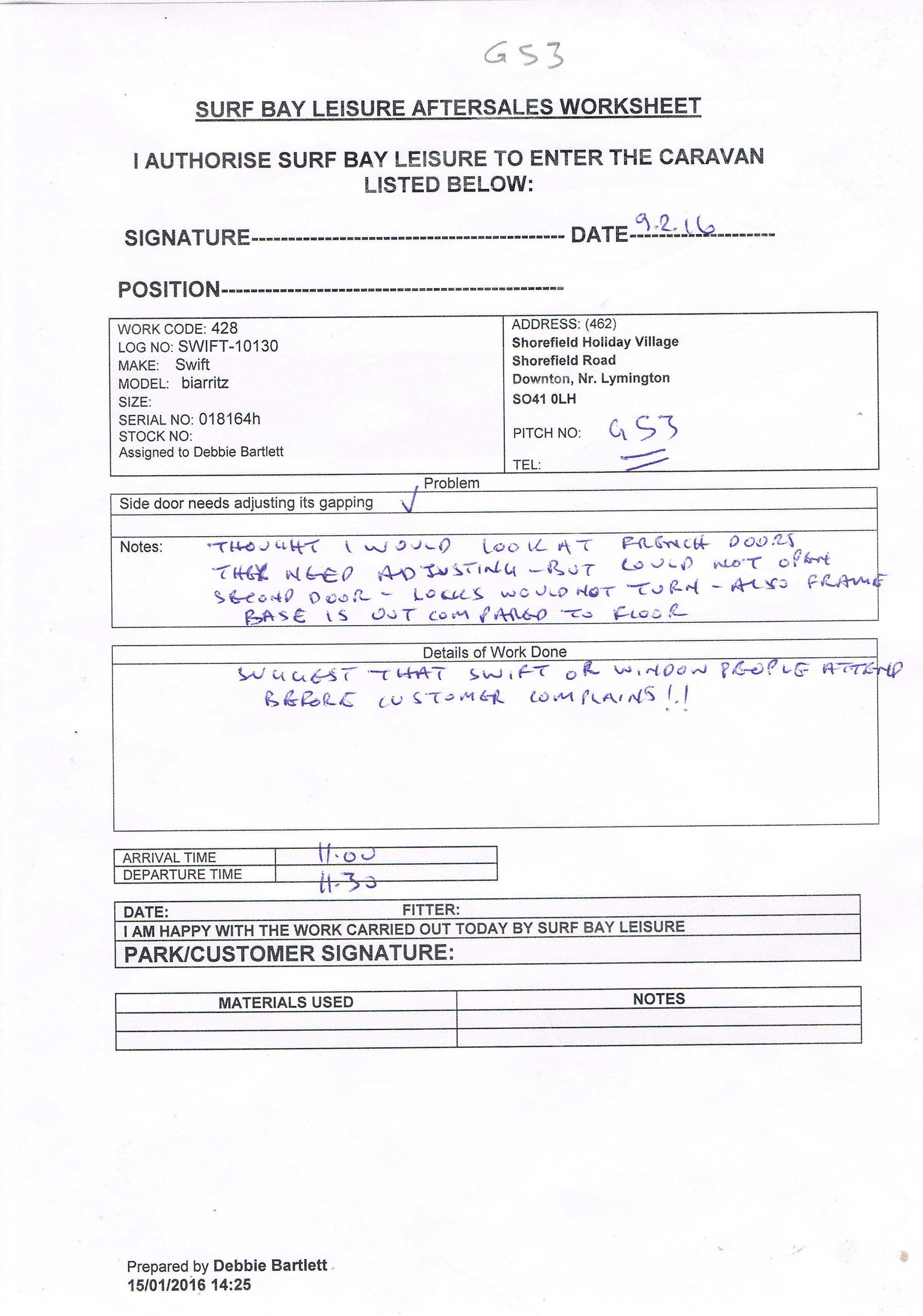 Nikki Curtis (Inactive) added a comment - Swift have queried this asking if this van is sited, i have confirmed that it is sited and resubmitted the claim.