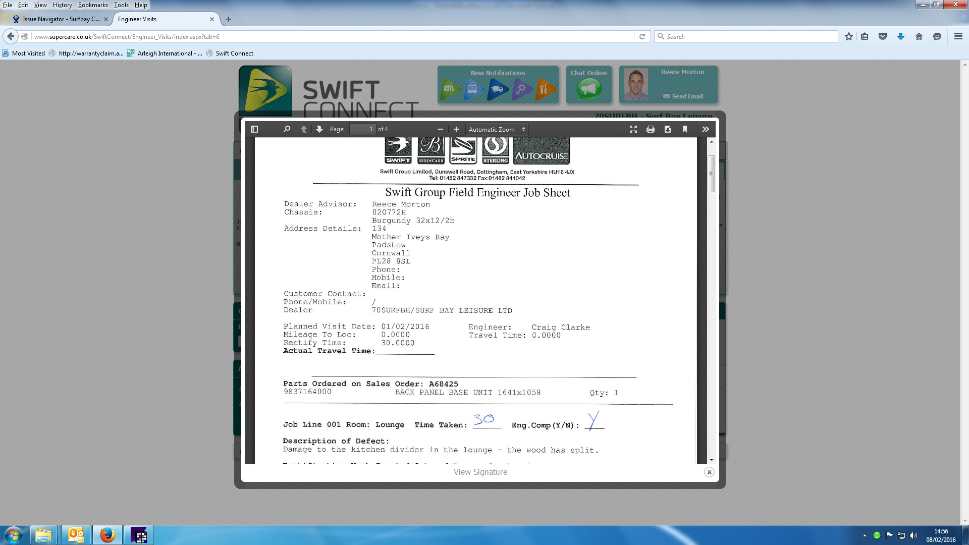 I have put this as a swift engineer to attend, I am not sure to what level the wood is damaged so this may need a swift assessment