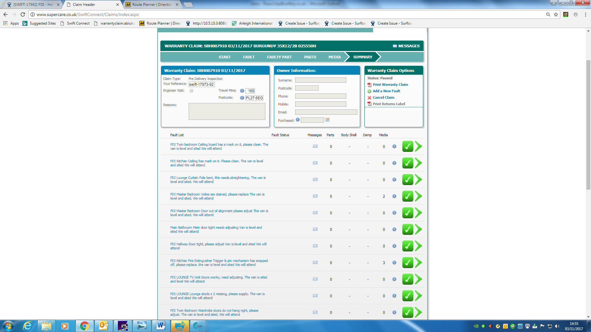 7 issues have been submitted through to Swift (see screenshot attached)