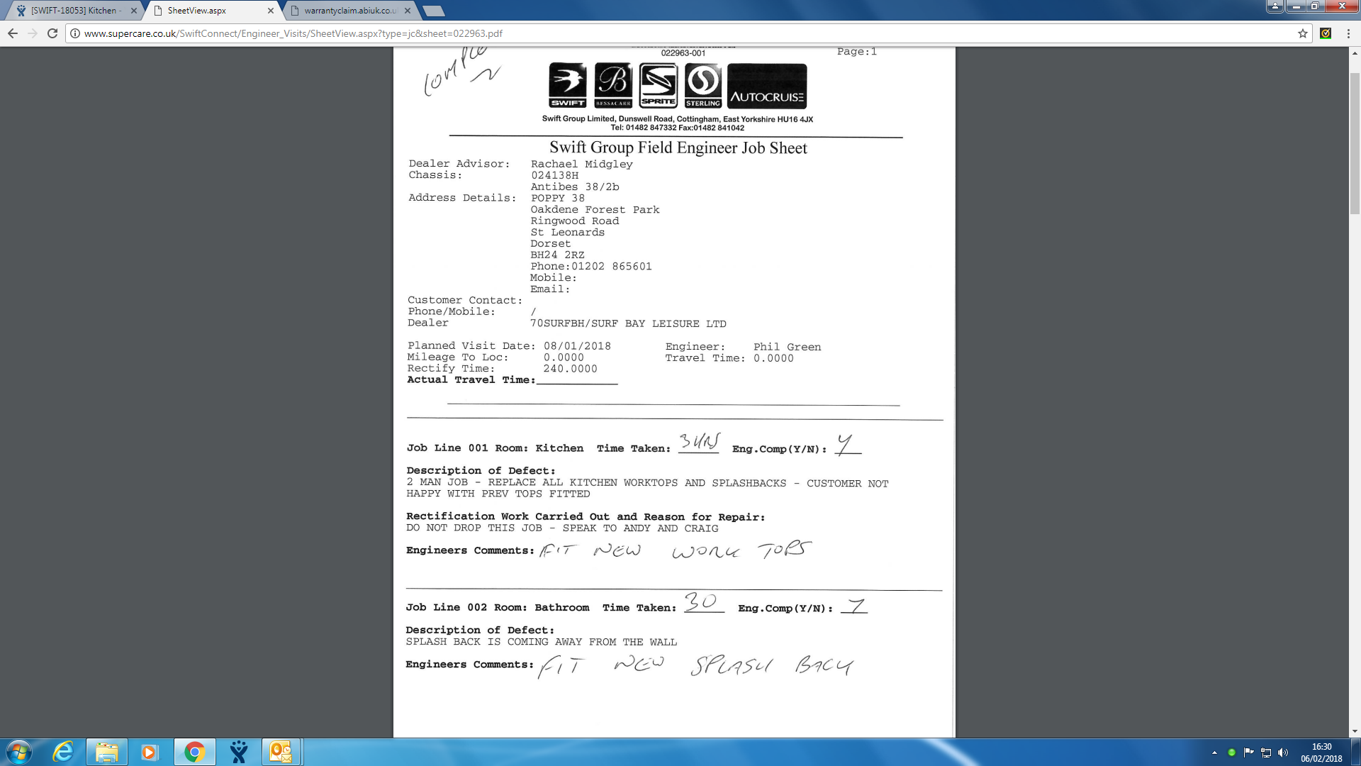 Isabel Smith (Inactive) added a comment - This is 1 of 29 issues that were reported by the owner to Leanne at the park see file attached. I have created the claim and submitted it through to Swift see screen shot attached. Park updated via email see screen shot attached.